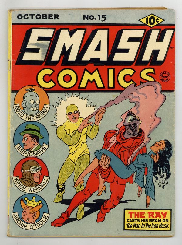 Fort Johnson Blown Up featuring Espionage Starring Black X, script by Will Eisner, art by Will Eisner [as Will Erwin, with some help from the shop]; Black X stops saboteurs from blowing up the Golder Dam. Chic Carter story, art by Vernon Henkel. Murder In the Wings starring Purple Trio, script by Jerry Iger [as S. M. Regi]. Invisible Justice story. The Ray story, art by Lou Fine [as E. Lectron]. Archie O'Toole story, script and art by George Tuska [as Bud Thomas]. Wings Wendall story, art by Vernon Henkel. Magno story, art by Paul Gustavson. Abdul the Arab story, art by Bob Powell [as Powell Roberts]. The Ghost Gang starring Bozo the Robot. 68 pgs. $0.10. Cover price $0.10.