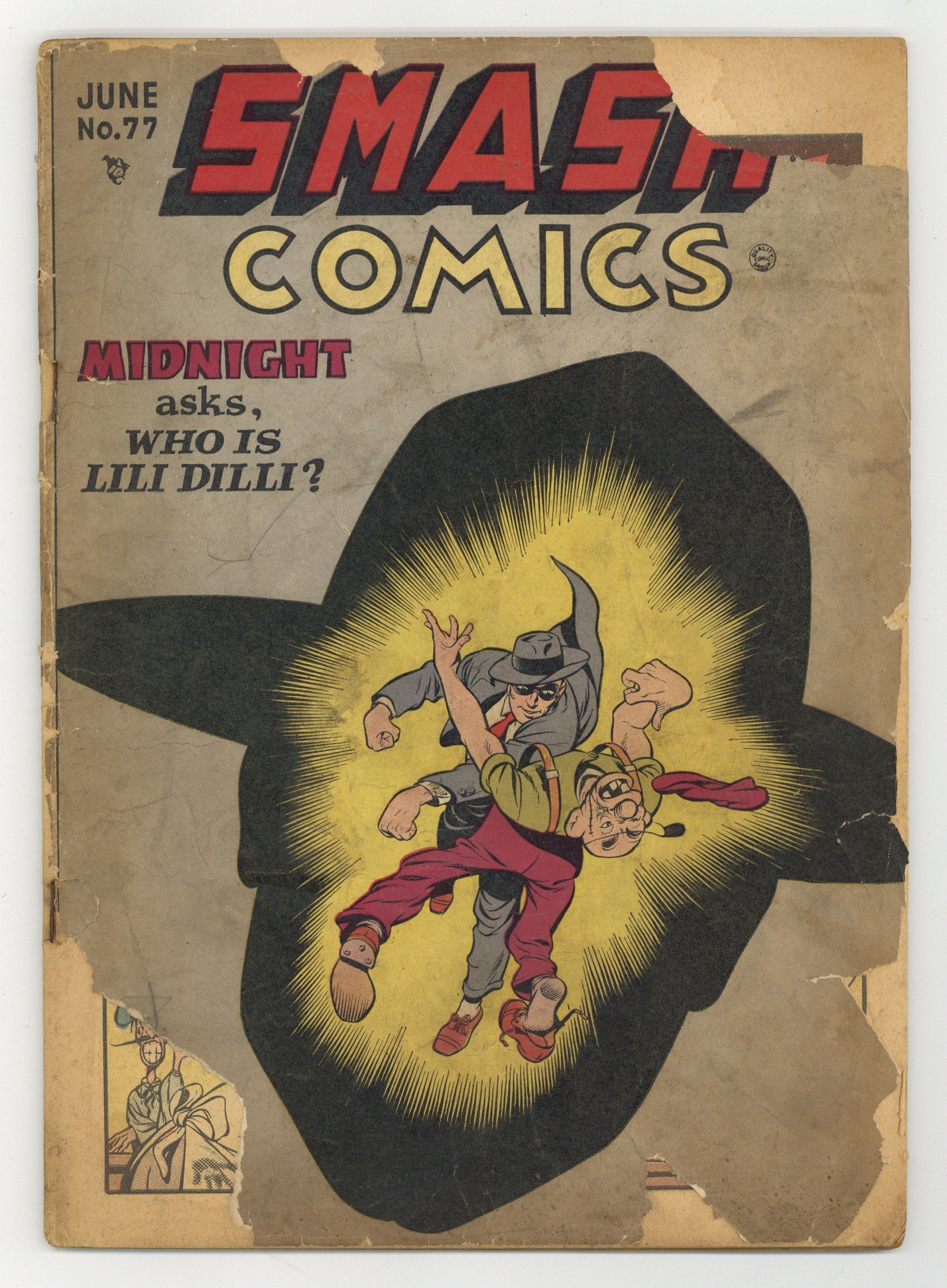 Who Is Lilli Dilli? starring Midnight, art by Jack Cole. World Premiere of Growing Pains With Citronella starring Citronella. Black X story. Lady Luck story, art by Klaus Nordling. Batch Bachelor story, art by Michael Senich. Doc Lays an Egg--Maybe text story starring Midnight. The Jester story. Daffy story. 60 pgs. $0.10. Cover price $0.10.
