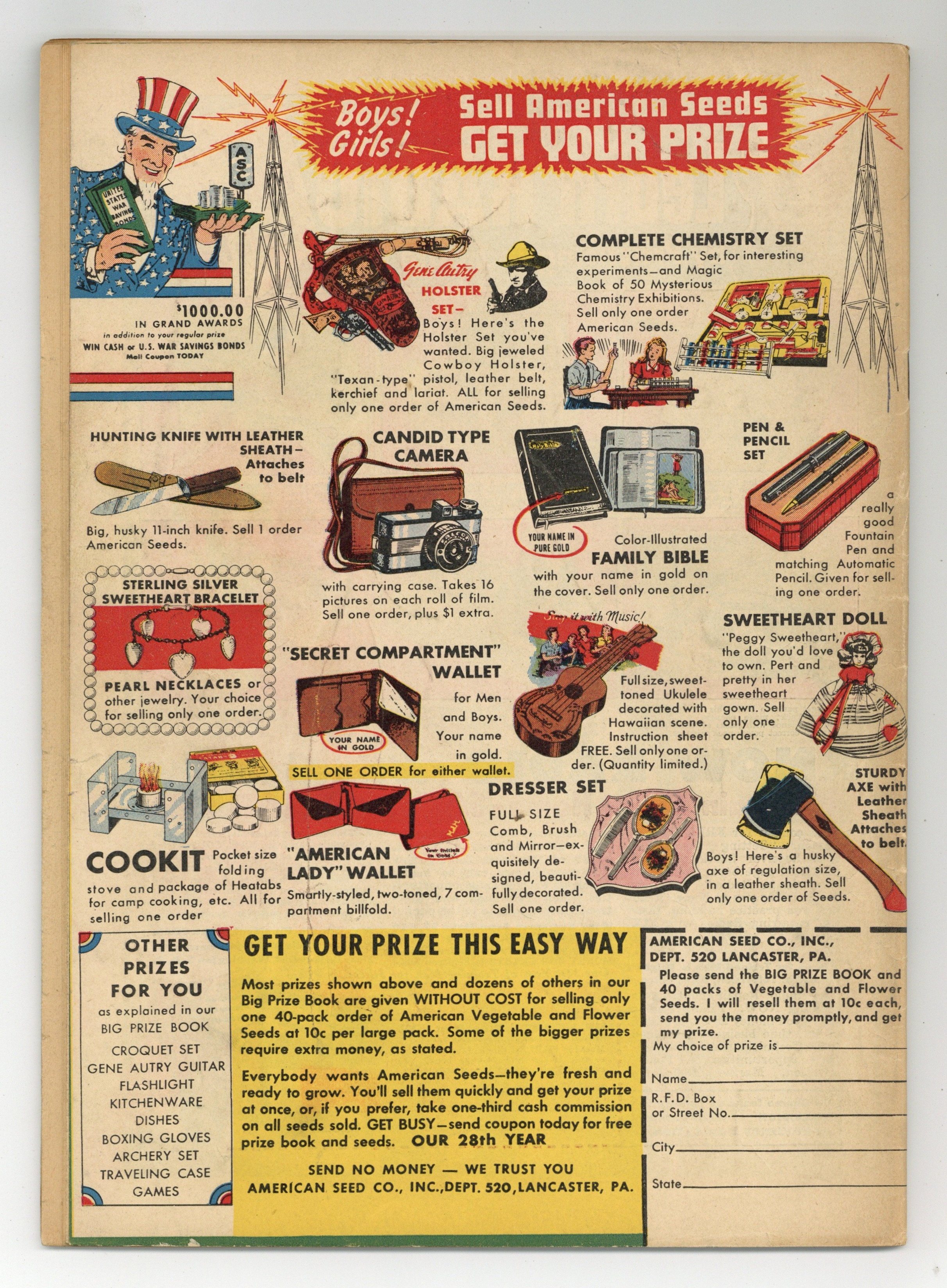 Cover art by Lou Fine. The Secret of the Gold Hills, pencils by Lou Fine. Cuthbert humor page. Untitled Spirit story, script by Bill Woolfolk, pencils by Lou Fine. Untitled Spirit story, script by Bill Woolfolk, pencils by Lou Fine. Untitled Spirit story, script by Bill Woolfolk, pencils by Lou Fine. Untitled Flatfoot Burns story, art by Al Stahl. Valley of Evil text story. Untitled Spirit story, script by Bill Woolfolk, pencils by Lou Fine. 52 pgs. $0.10. Cover price $0.10.