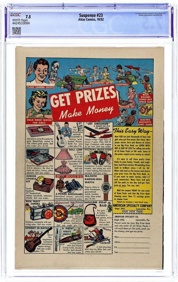 Published 1952 by Marvel/Atlas.$1,200.00- Paper: White