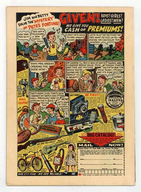 $45.00"The Wrong Answer" (art by Mac Pakula), "The Final Salvo" (art by Jerry Robinson), "Beware the Dead," "Cycle" (script by Stan Lee, art by Joe Maneely), "The Casualty" (art by Robert Q. Sale), and a two-page text story, "Who Is the Hero?" Cover price $0.10.