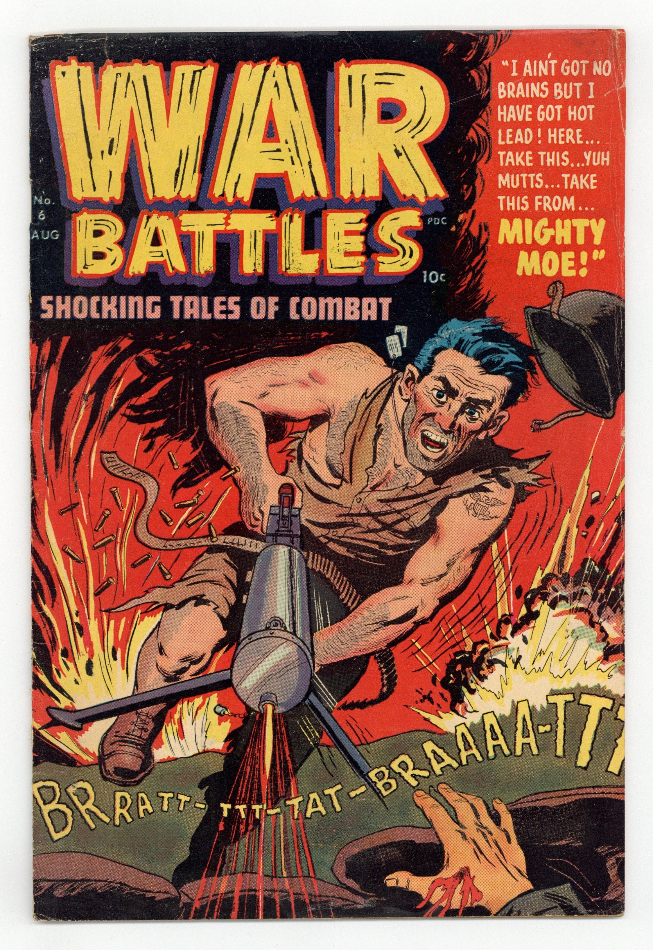 Stories and art by Jack Sparling and others. Tales of war from Harvey, published as the Cold War was heating up. University professor Josh makes a surprisingly effective soldier when the chips are down. A fighter pilot's faith is restored by a close call in combat. A look at the Corps of Engineers and their importance in the combat arena. Combat Engineers!; Mighty Moe!; Jungle Death; The Bard of Company "B"; Guts!; Angel in My Pocket. 36 pages, full color. Cover price $0.10.