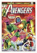 $25.00"Bid Tomorrow Goodbye!" Script by Steve Englehart. Art by Sal Buscema (breakdowns) and Joe Staton (finishes). Cover by Ron Wilson and Mike Esposito. A bright shining star appears over Avengers Mansion! What does the radiant beacon foretell? Kang the Conqueror thinks he knows! And thus begins the Celestial Madonna saga! The 41st century Master of Time and his macrobots attack the Avengers outside their mansion! After overwhelming the six avengers, Kang absconds with five of them plus Agatha Harkness! The Conqueror deems the Swordsman as unworthy and leaves him behind. Will Kang end up regretting that decision? The former sword-wielding super-villain certainly has his work cut out for him! However, the Swordsman catches a big break when Agatha Harkness telepathically reveals Kang's hideaway! The centuries-old pyramids of Egypt! After arriving in the Egyptian desert, the Swordsman desperately needs an ally! Could one of the ancient pharaohs still be lurking around to help? Story continues in Giant-Size Avengers 2. Cameo appearance by Rama-Tut. Avengers Lineup: Iron Man, Mantis, Scarlet Witch, Swordsman, Thor, and the Vision. (Notes: The classic Celestial Madonna storyline runs through Avengers 129-135 and Giant-Size Avengers 2-4. Kang previously battled Earth's Mightiest Heroes in Avengers (1st series) 71. The letters page contains Marvel Value Stamp Series A #88 The Leader.) 36 pages Cover price $0.25.