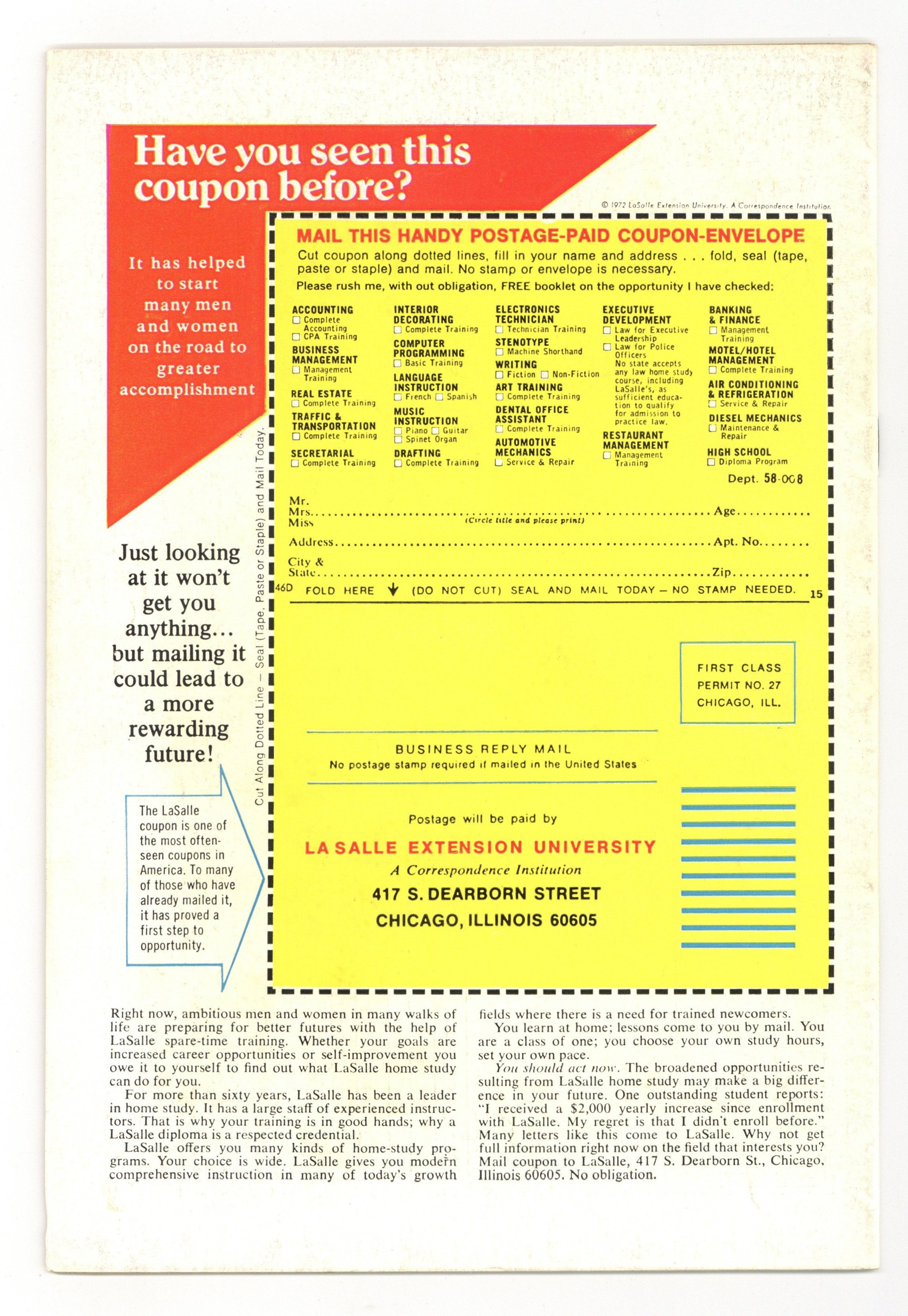 $27.00"Bid Tomorrow Goodbye!" Script by Steve Englehart. Art by Sal Buscema (breakdowns) and Joe Staton (finishes). Cover by Ron Wilson and Mike Esposito. A bright shining star appears over Avengers Mansion! What does the radiant beacon foretell? Kang the Conqueror thinks he knows! And thus begins the Celestial Madonna saga! The 41st century Master of Time and his macrobots attack the Avengers outside their mansion! After overwhelming the six avengers, Kang absconds with five of them plus Agatha Harkness! The Conqueror deems the Swordsman as unworthy and leaves him behind. Will Kang end up regretting that decision? The former sword-wielding super-villain certainly has his work cut out for him! However, the Swordsman catches a big break when Agatha Harkness telepathically reveals Kang's hideaway! The centuries-old pyramids of Egypt! After arriving in the Egyptian desert, the Swordsman desperately needs an ally! Could one of the ancient pharaohs still be lurking around to help? Story continues in Giant-Size Avengers 2. Cameo appearance by Rama-Tut. Avengers Lineup: Iron Man, Mantis, Scarlet Witch, Swordsman, Thor, and the Vision. (Notes: The classic Celestial Madonna storyline runs through Avengers 129-135 and Giant-Size Avengers 2-4. Kang previously battled Earth's Mightiest Heroes in Avengers (1st series) 71. The letters page contains Marvel Value Stamp Series A #88 The Leader.) 36 pages Cover price $0.25.