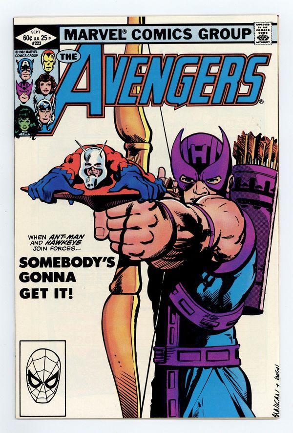 Direct Edition. "Of Robin Hoods and Roustabouts" Guest-starring Ant-Man. Script by David Michelinie. Pencils by Greg LaRocque. Inks by Brett Breeding and helpers. Cover by Ed Hannigan and Klaus Janson. On a sunny afternoon in Nassau County, Clint Barton and Scott Lang attend a traveling carnival. Scott is there having fun with his daughter enjoying the attractions, while Clint is following a lead concerning possible criminal activity! Hawkeye's and Ant-Man's paths collide when a super-villain is discovered at the carnival! It's the Taskmaster! The man with the photographic reflexes! And inside a giant circus tent, Ant-Man and the ace archer will try to cancel the Taskmaster's act! Cameo appearances by Captain America, Iron Man, She-Hulk, and the Wasp. (Notes: The Taskmaster previously appeared in Marvel Team-Up 103. The back cover features a Megaforce ad drawn by William Stout.) 36 pages Cover price $0.60.