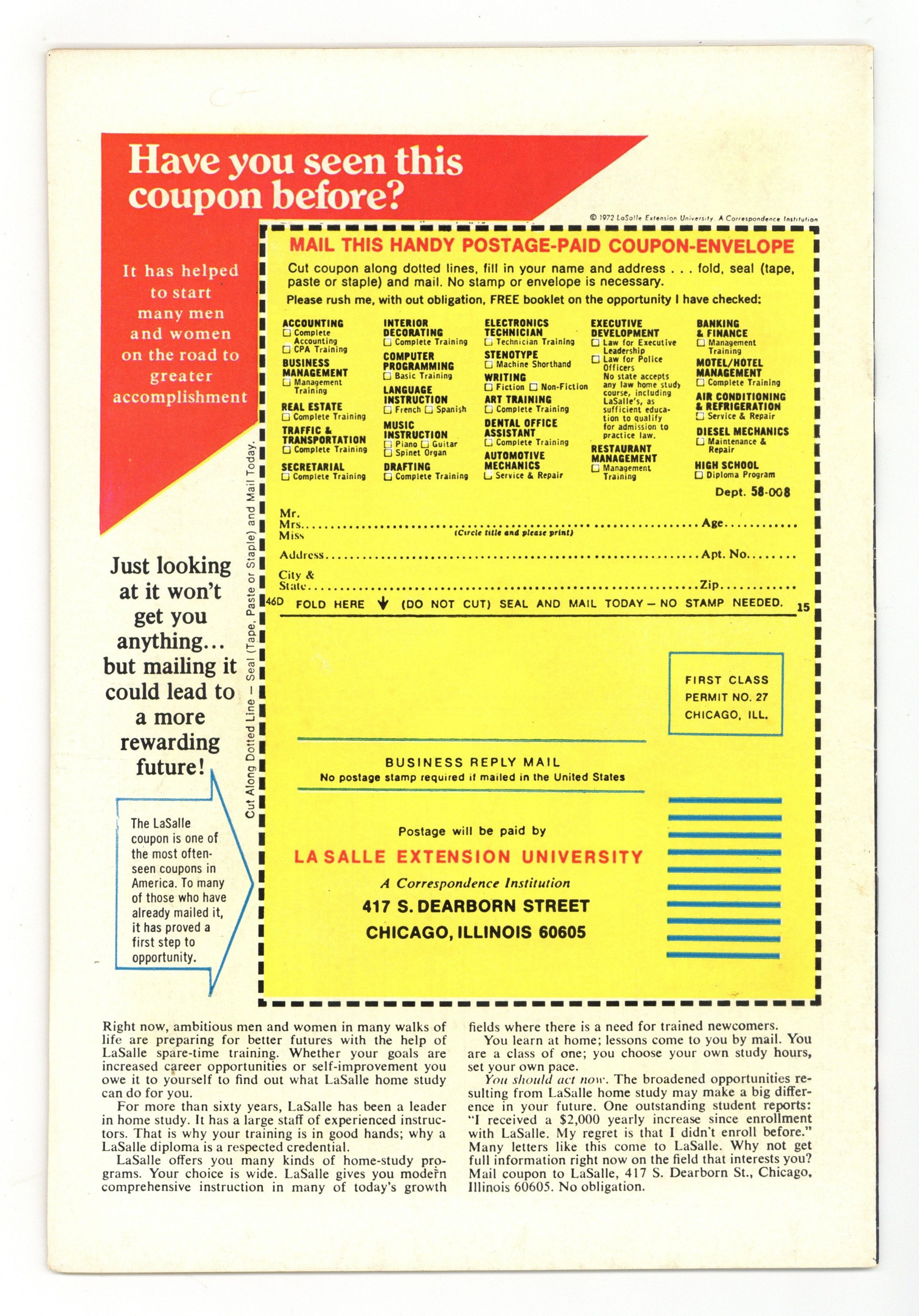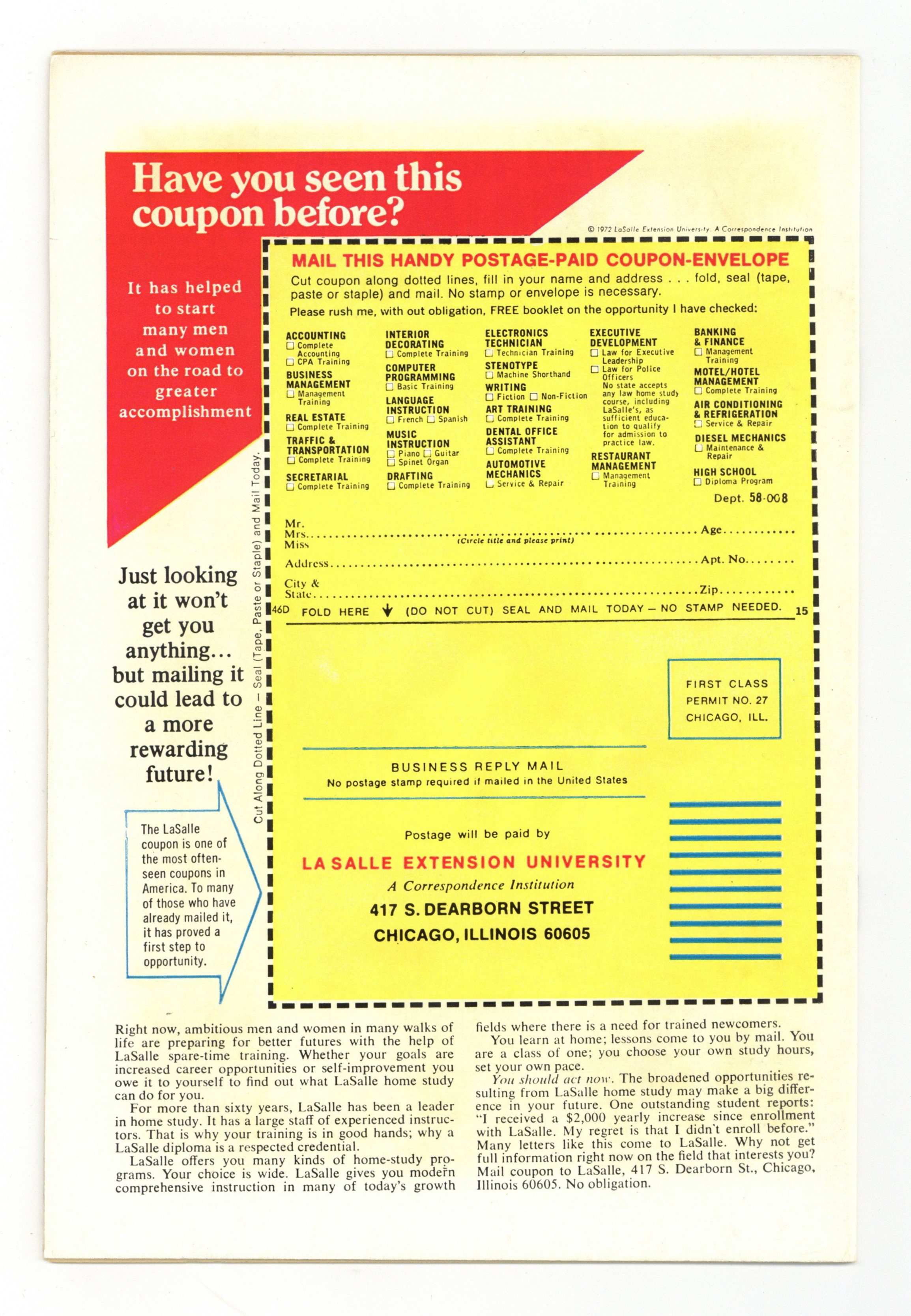 Cover pencils by Jim Starlin, inks by Al Milgrom. Death-Cult!, script by Doug Moench, pencils by Larry Hama, inks by Dick Giordano; Iron Fist meets Colleen Wing (1st appearance) and her father who knows all about Danny's stay in K'un-Lun; Iron Fist tries to make amends with Joy Meachum but she leads him into a trap where he has to face members of the Kara-Kai death cult; The mysterious ninja who actually killed Meachum shows up to give Danny a hand. Letter to the editor from comic artist Ken Meyer Jr. The letters page also contains Marvel Value Stamp series A # 6 (Thor by John Buscema, and also an ad for Wolverine's debut in Incredible Hulk 181. Cover price $0.25.