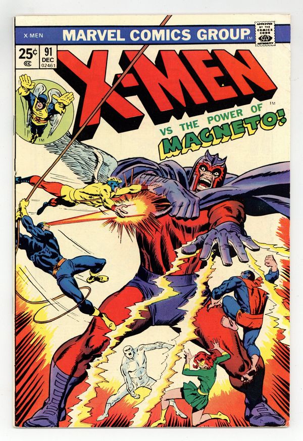 Cover pencils by John Buscema. The Torch is Passed...!, script by Roy Thomas and Stan Lee, pencils by George Tuska and Steve Ditko, inks by John Tartaglione; The X-Men attend Professor X's funeral and are surprised when Quicksilver shows up; Returning to the mansion, the X-Men are greeted by a posthumous message from Xavier passing the torch on to his students; Quicksilver returns to Magneto's lair and is plagied with doubt about leaving the Avengers to rejoin his old master but fears for his sister's health; The X-Men lay a trap and attack Magneto and his Brotherhood but the bad guys quickly gain the upper hand; reprinted from issue 42. Journey's End, script by Stan Lee, art by Steve Ditko; A crook ends up killing a night watchman and flees into the past in a time machine where he has a violent encounter with the machine's creator; reprinted from Amazing Adult Fantasy #7. 36 pgs. $0.25. Cover price $0.25.