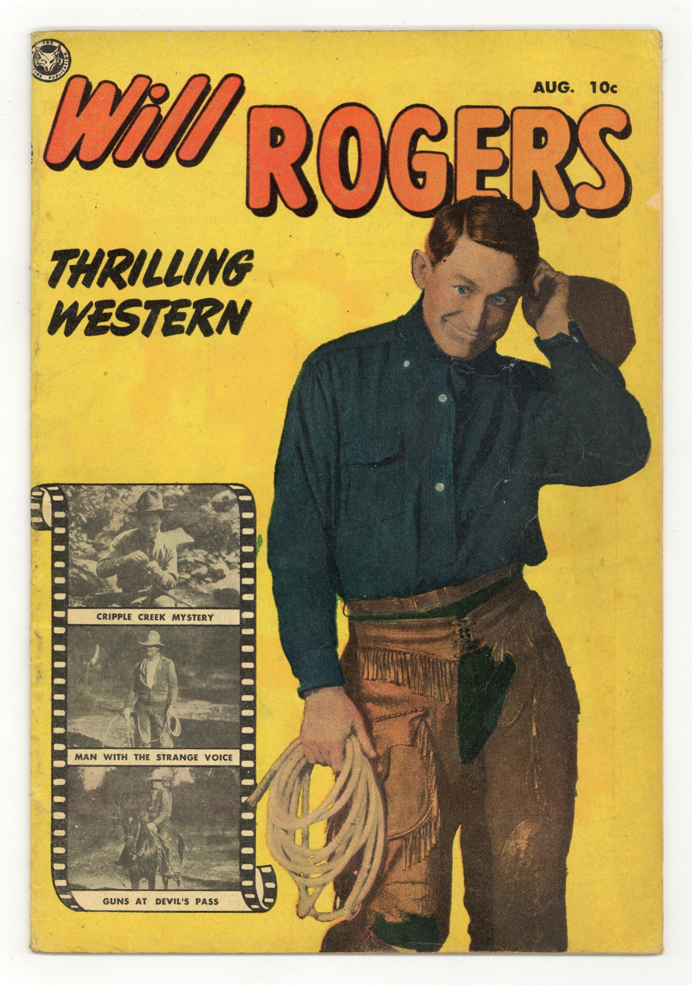 Art by Pete Morisi and others. Western tales from Fox Feature Syndicate, some featuring well-known cowboy writer Will Rogers. Sam Bass is an outlaw, but he doesn't expect treachery from his own partner Jim Murphy; Will seeks the mystery man behind Bruiser's outlaw gang; The new veterinarian in town becomes a target for an outlaw. The Cripple Creek Mystery; Jim Murphy's Treachery; Rangeland Terror-Plunder Of The Range; Fair To The Death; The Man With The Strange Voice. Final issue of the series; this was actually published after issue #5. 32 pages, Full Color. Cover price $0.10.