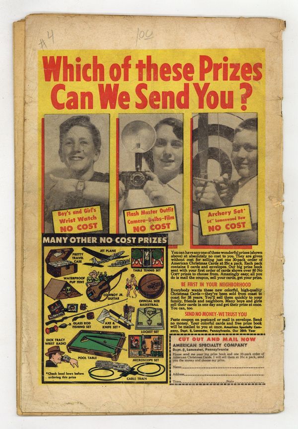 Cover art by Bill Everett. The Strange Wife of Henry Johnson!, art by John Forte. A Robot Among Us!, art by Herb Familton. Bright Day text story. Girl in a Trap!, art by Werner Roth. The Frightened Ones! The Only Clue!, art by Bob Powell. Voice of the Dummy!, art by Bernard Baily. 36 pgs. $0.10. Cover price $0.10.