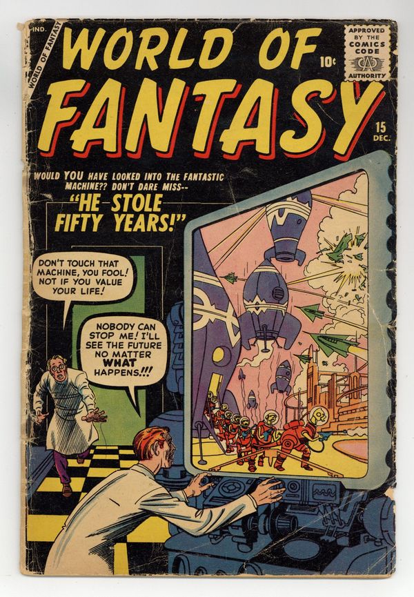 Cover pencils by Jack Kirby, inks by Chris Rule. The Secret of Steven Durham, art by Kurt Schaffenberger; A man's friend realizes that he has developed a way to stop aging by taking treatments from a device that measures the speed of light. He Stole 50 Years, script by Carl Wessler, art by Ed Winiarski. Mystery Of The Mountain, art by Chris Rule; Strange explosions at Mt. Rushmore lead a scientist to postulate that people from another dimension, parallel to Earth's, are creating a monument to one of their great men. Strange Doings In Cell 4-B!, art by Joe Certa. The Uncanny Keys, art by Richard Doxsee. The Vial Of Inspiration text, art by Joe Maneely. The Sinister Supermen, art by Sam Kweskin. Cover price $0.10.