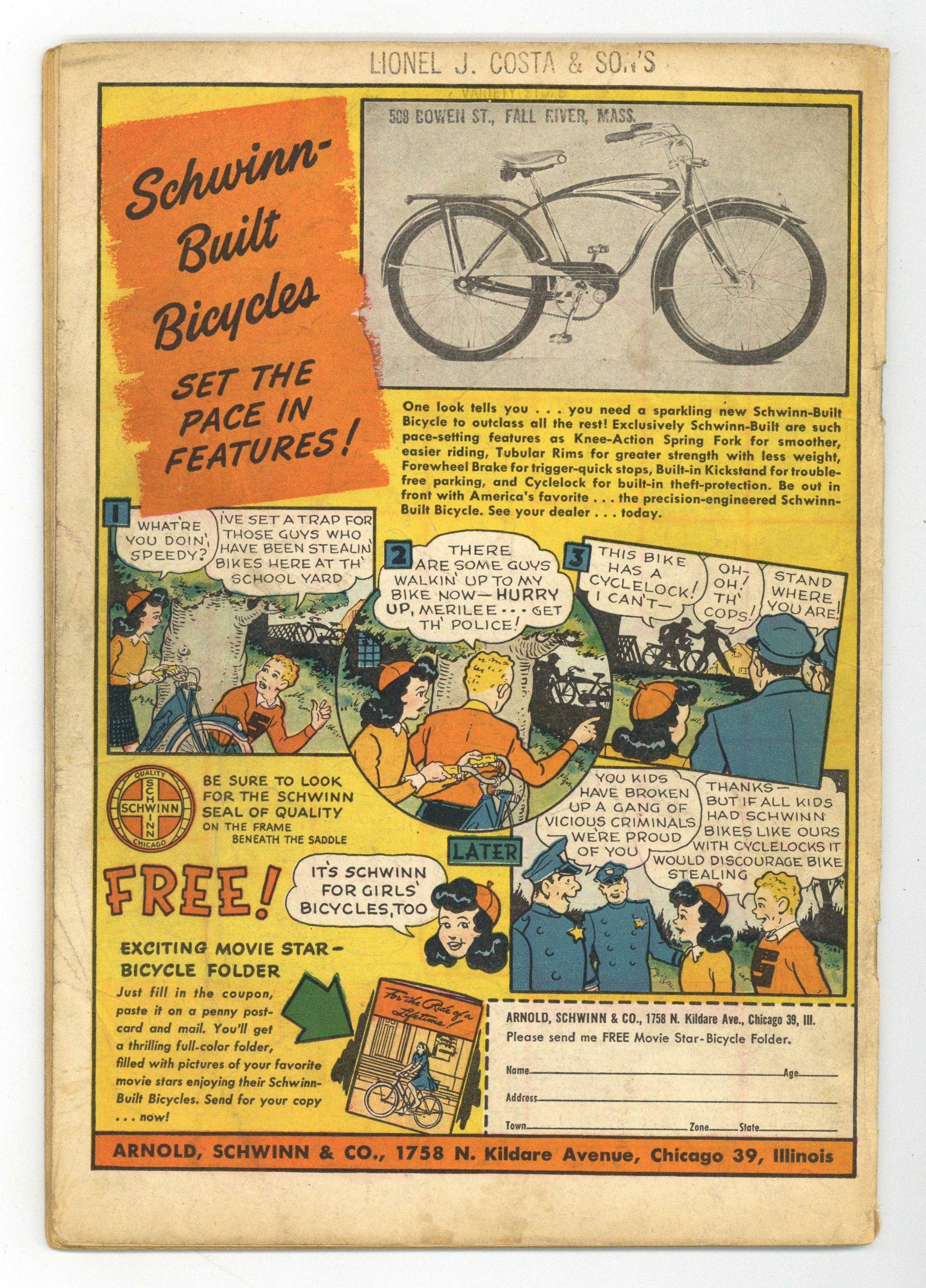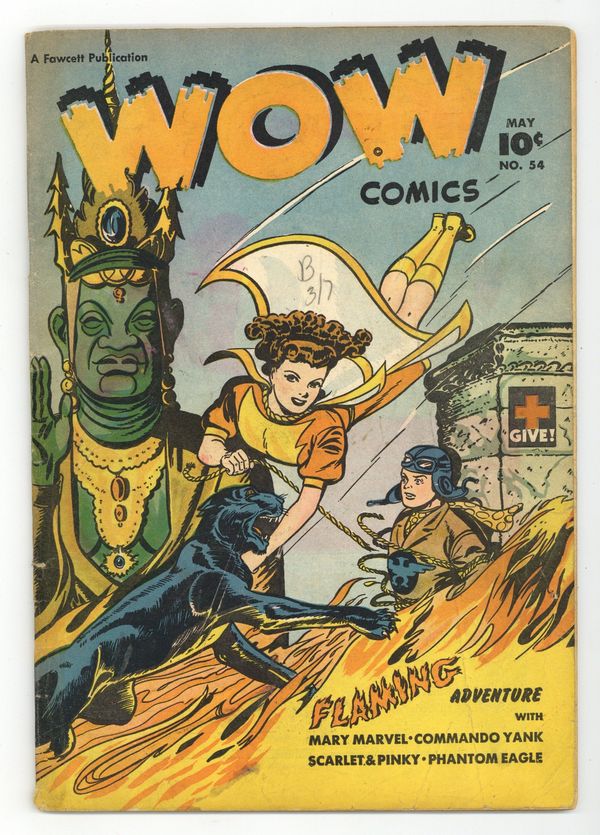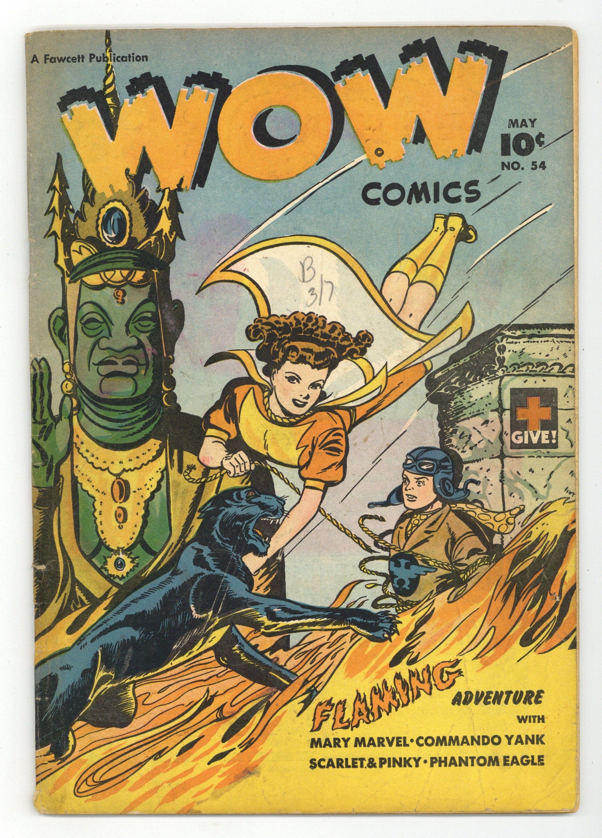 Cover by Jack Binder. Stories and art by Otto Binder, Jack Binder and Dick MacKay. A Fawcett anthology with an emphasis on superhero adventure. While touring the South Seas, Mary Marvel encounters two men who are engaged in a primitive duel to the death on a deserted island. Commando Yank investigates the deadly secret of the winged serpent in Central America. Phantom Eagle has a postwar adventure among the ancient ruins of "French Indo-China," aka Vietnam. Mary Marvel: Death Challenge; Boy Scout Bob; Mr. Scarlet: The Fly Man; Kanvasback: Flower of Youth; Whipper-Snappers; Phantom Eagle: The Curse of the Ruins; Richard Richard, Private Dick: The Canine Catastrophe; Muscle Hedd; Penny Graves: The Missing Floor; Commando Yank: The Winged Serpent. 48 pages, Full Color. Cover price $0.10.