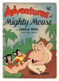 The world's mightiest mouse combines funny-animal antics with superhero adventure as he fights for mice everywhere. In an issue-length adventure, Mighty Mouse prevents the Claw's agents from hijacking the new high-speed "atom plane." But when Mitzi accidentally launches the plane with herself aboard, the cats have a second chance to capture it, unless MM can get there first. The Terry Bears try to help when Papa Bear needs a new job. Chesty; Jungle Peril; Terry Bears: Papa is Fired; Dimwit: Hypnotic Hound; Heckle and Jeckle; Gandy Goose: The Half-Baked Yegg; Sourpuss; Dinky. 32 pages, Full Color. Cover price $0.10.