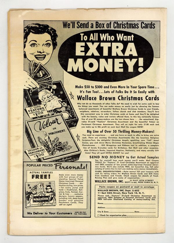 Published Nov 1955 by Ace Periodicals.$86.00All reprints. Photo cover. In order of appearance: "Forbidden Glamour" reprinted from Real Love (1949-56 Ace) #40; "It Happened on a Blind Date" art by Alice Kirkpatrick, reprinted from Glamorous Romances (1949) #47; "Her Double Life" reprinted from Love at First Sight (1949) #6; and "Her Trick to Win Him" reprinted from Love Experiences (1949) #23. "For a More Glamorous You: Perfume for Allure, A Girl Can Go Places If..." text article reprinted from "Short-Cuts to Glamor..." in All Romances (1949) #3, "Glamorizing Yourself..." in Glamorous Romances (1949) #62, "Your Charm Guide..." in Love at First Sight (1949) #24, "The Charm Corner..." in Real Love (1949-56 Ace) #64, and "Help Yourself to Allure..." in Love Experiences (1949) #33, and partially reprinted from "A Girl Can Go Places If..." in Ten Story Love Vol. 29 (1951) #3. Indicia states "Volume XXXI, Number 5, #186". 36 pages. Full color. Cover price $0.10.