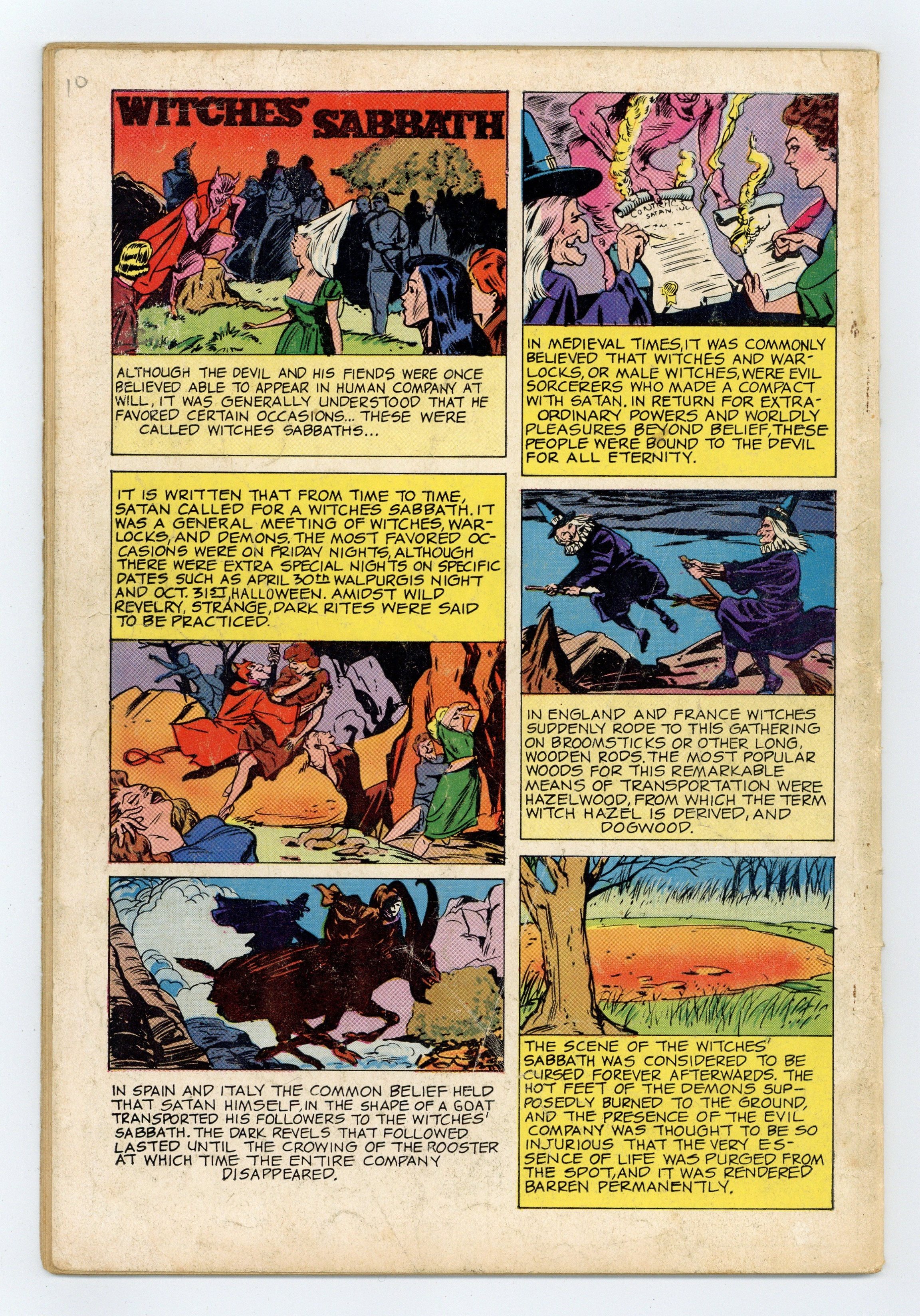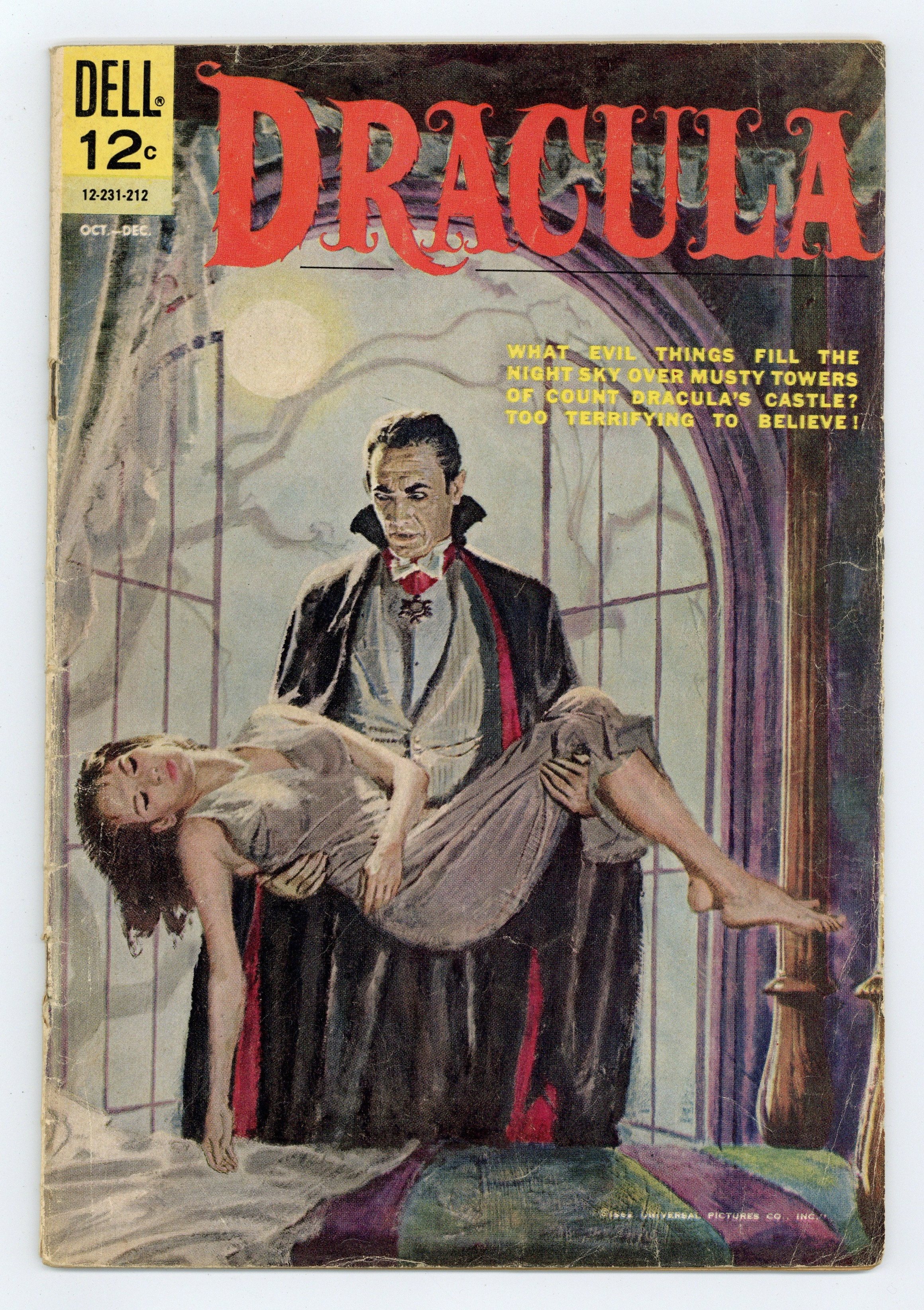 Stories and art by Max Elkan and Don Segall. Tales of horror from Dell, inspired by the classic Universal Monster Dracula. Sir Basil seeks the help of Professor Janos Tesla after Basil's son dies mysteriously in Transylvania. Basil wants to find the beautiful Irina, who doesn't cast reflections, but that leads the two men into a confrontation with the Prince of Vampires himself. Plus a one-pager about the Russian sirens called Rusalki. Impressive painted cover by an unknown artist. The Rusalki: Water Maidens of Doom; The Vampires Curse; The Hunters of the Forest; Witches Sabbath. 32 pages, Full Color. Cover price $0.12.