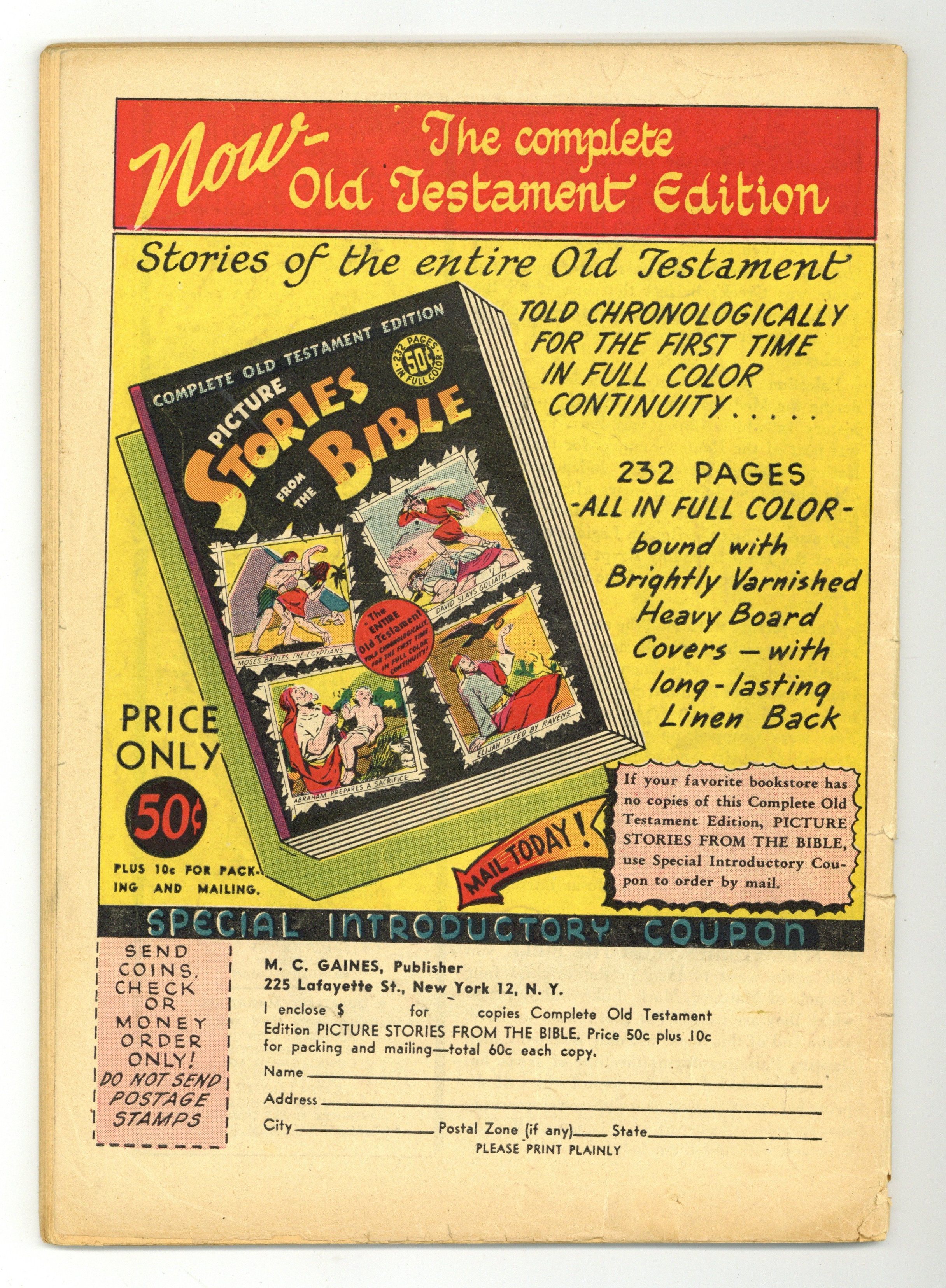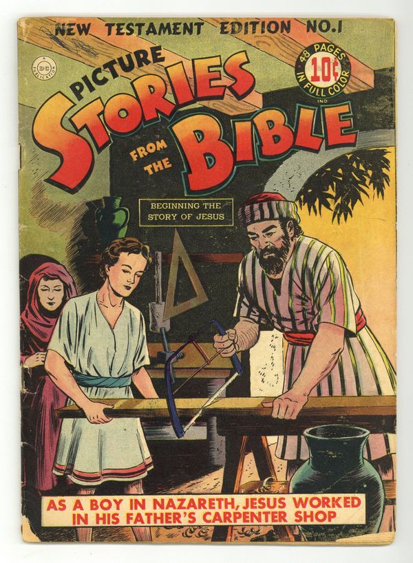 Cover by Don Cameron. Stories and art by Montgomery Mulford, Edward L. Wertheim and Don Cameron. A very early religious book from EC, back when the company was still run by Max Gaines and called "Educational Comics." The early life of Jesus and the beginning of his ministry. The Story of Jesus Part One; Palestine in the Time of Christ; Chronological Index of the Principal Events in the Story of Jesus, Part One. 48 pages, Full Color. Cover price $0.10.