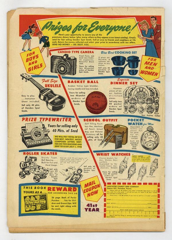 The Doll Man stars in "The Boy Who Knew All the Answers," "The Man in the Iron Mask," and "The Undertaker!" Torchy untitled back-up story (art by Bill Ward). Cover price $0.10.