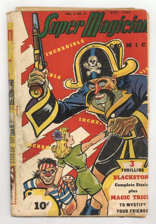 "Blackstone Meets the Pirates of Twin Island," "Blackstone Banishes the Banshee," "Red Dragon, "Arch Oboler's Lights Out," "The Toughest Reporter I Ever Knew," and "Blackstone Finds the Weird Waterfall." Cover price $0.10.