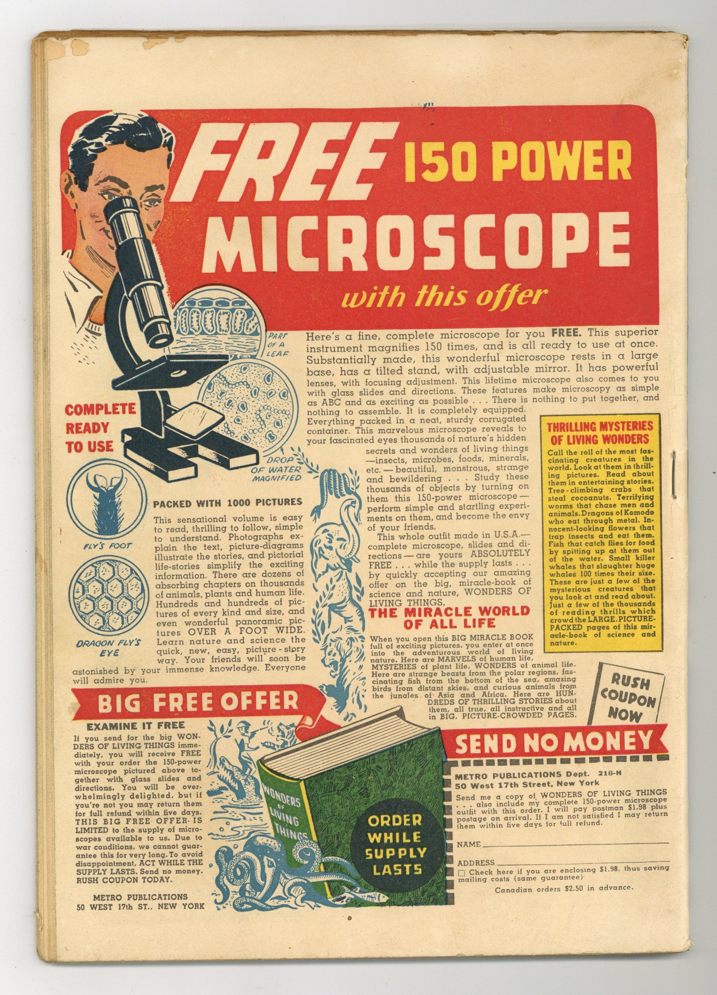 Published Nov 1943 by Street & Smith.$35.00- Centerfold and 4 additional wraps detached. Only one staple (manufacturing). Cover oxidation.