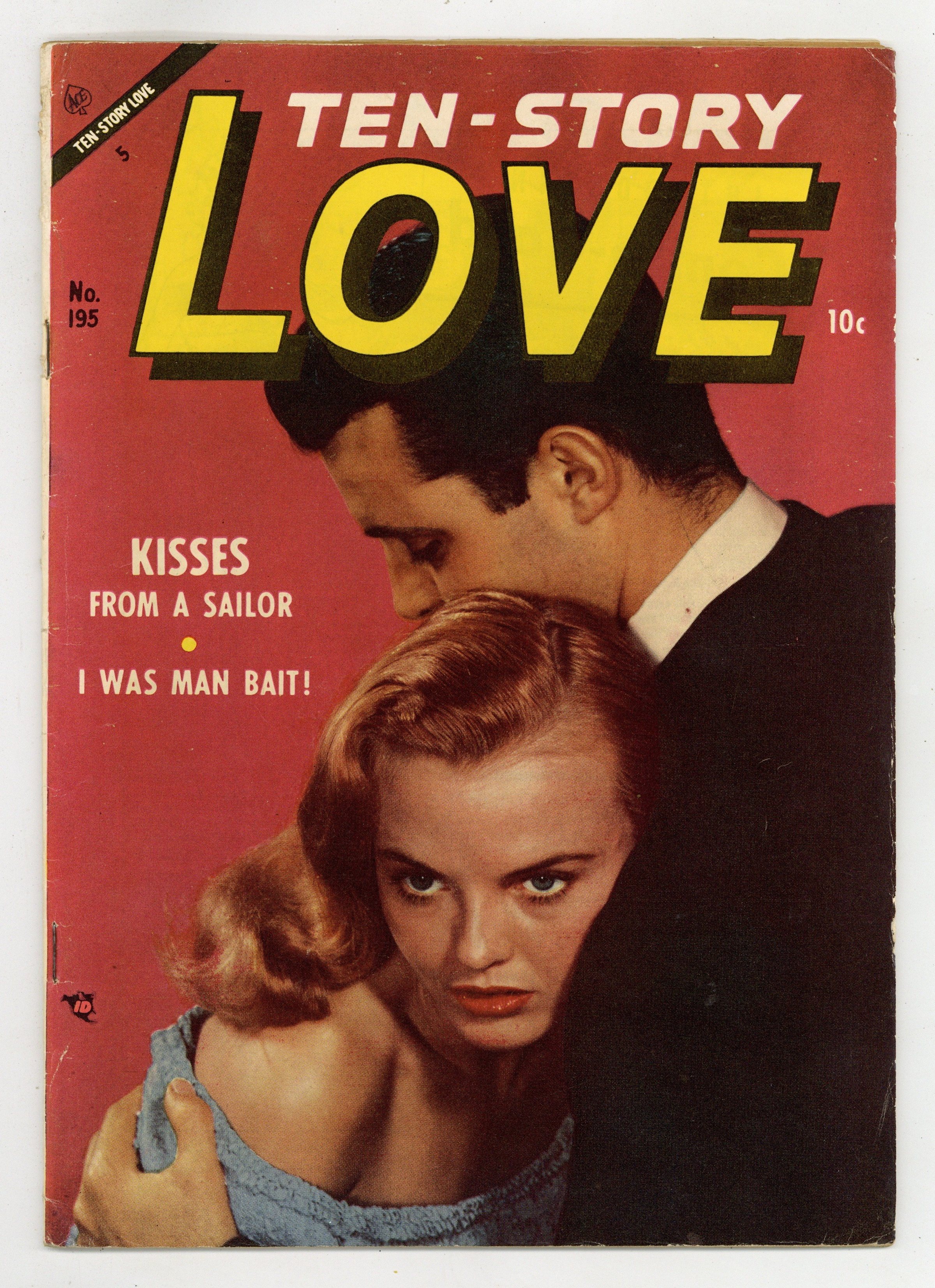 Photo cover. Contains original and reprinted material as noted. In order of appearance: "Kisses From a Sailor"; "A Dangerous Man to Cross"; "I Was Man Bait!"; and "Love Is Where You Find It" reprinted from All Love (1949) #31. Text articles: "Tips On Courtship: When a Girl Is Afraid of Love..." reprinted from "Help Yourself to Allure..." in Love Experiences (1949) #6, "The Charm Corner..." in Real Love (1949-56 Ace) #31, "The Charm Corner..." in Real Love (1949-56 Ace) #53, and "For a More Glamorous You..." in Complete Love Magazine Vol. 30 (1954) #2, and reprinted as "The Charm Corner..." in Real Love (1949-56 Ace) #70; "Enhance Your Appearance: For Lovelier Legs..." reprinted from "Glamorizing Yourself..." in Glamorous Romances (1949) #65 and from "The Charm Corner..." in Real Love (1949-56 Ace) #59. Indicia states "TEN-STORY LOVE" and "Volume XXXIII, Number 3, #195". 36 pages. Full color. Cover price $0.10.
