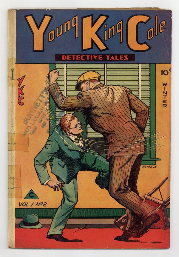 Cover art by Jim Wilcox. "Blackhanded" text story by Lee Fredricks. Untitled story, art by Jim Wilcox; Having been called to duty by the federal government, Kingston turns the reins of his detective agency over to his son, Young King Cole. Just as this happens, the once vanquished Spade Gang returns to seek revenge against the Coles. Untitled story, art by Jason Comic Art Studio; Klooz has no clients until the phone rings and a woman wants him to find her stolen cat. "Finger Marks" text story by Kenneth Fitch; It appears that Foyle killed crime boss Maxie Madden, however Detective Campbell has another suspect in mind after reviewing the evidence. Untitled story, script by Robert Plate, art by Wayne Boring; A wave of near accidents at the college, at first seen as practical jokes, ends with attempted murder. Untitled story, art by Nina Albright; Accidents and murders at the Skylight building are forcing the owner to sell at a low price, but Dr. Doom and his detective students offer to solve the mystery. Untitled story, script by Robert Plate, art by Harvey Fuller; Homer is out hunting for a fabulous white moose, but finds a man in hiding believing he has killed his girlfriend many years ago. 52 pgs., full color. Cover price $0.10.