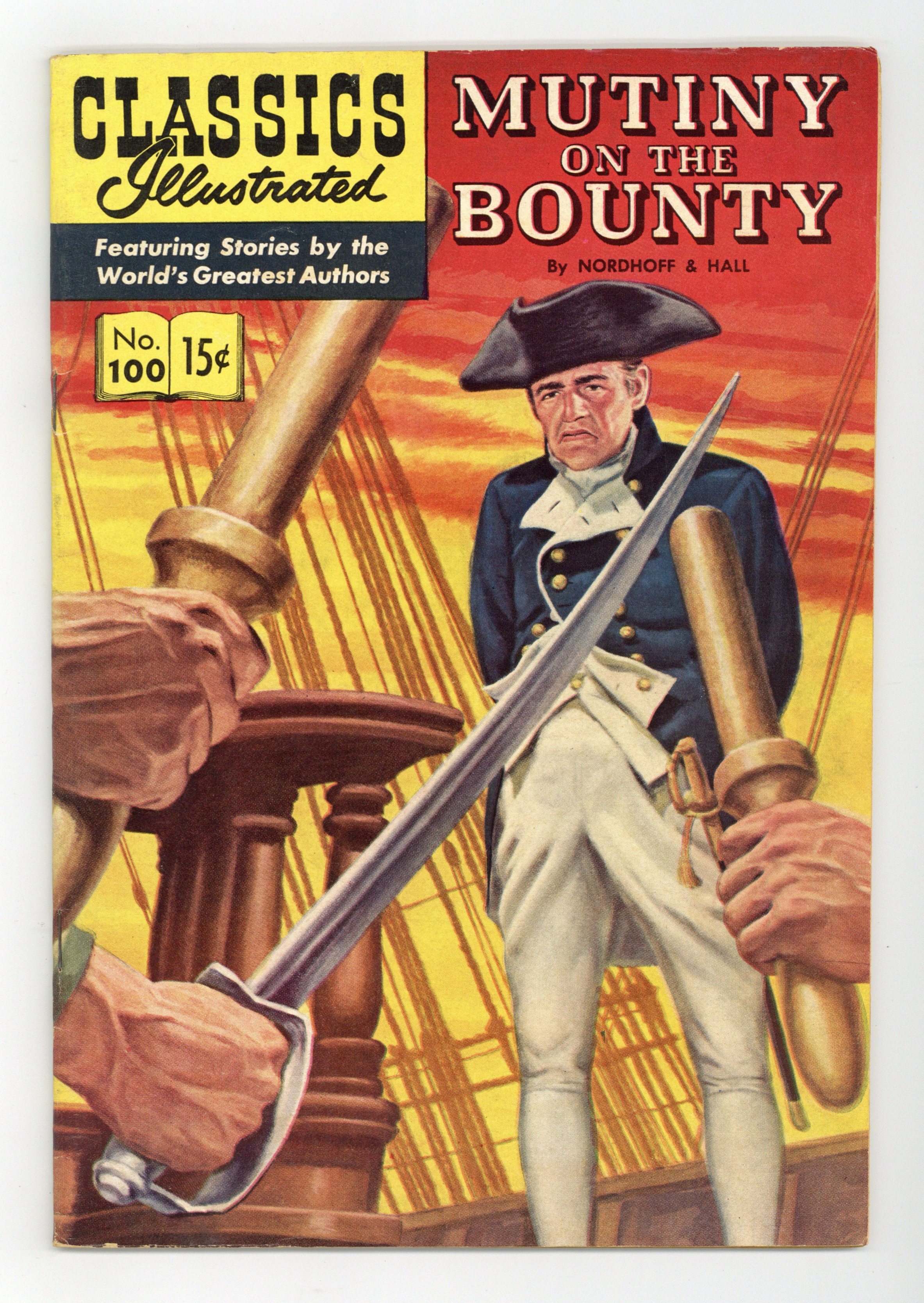 Published Oct 1952 by Classics Illustrated.$3.50Mutiny on the Bounty, 1st Printing, Painted Cover. (HRN 100, with 10/52 date). Beginning the first part of the Bounty trilogy, the story continues in Classics Illustrated #103 and 109. Cover price $0.15.