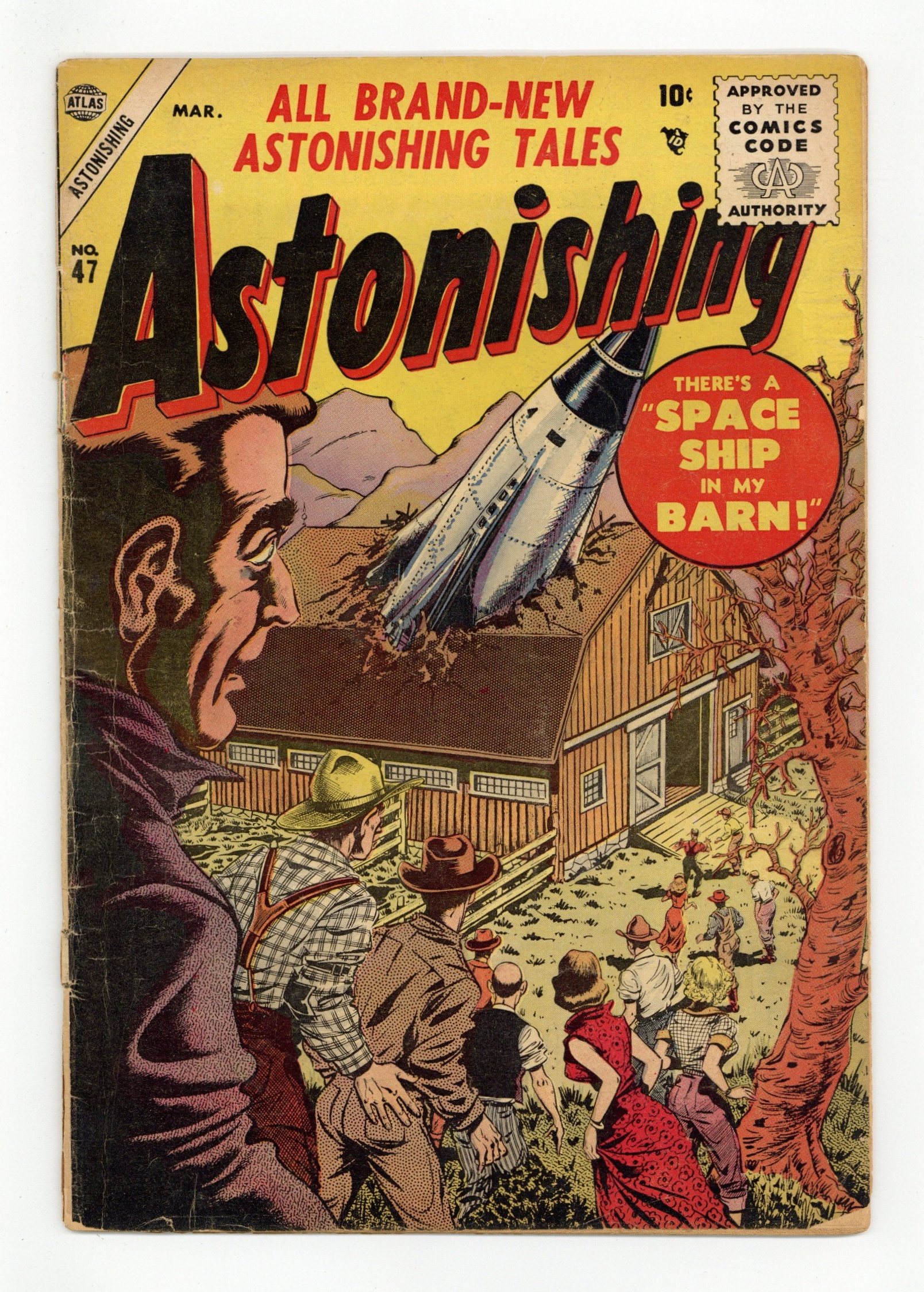 Published Mar 1956 by Marvel/Atlas.$27.00- Cover detached. Coupon torn from from page. 3 1/2" Cumulative spine split.