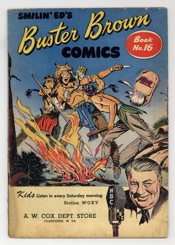 Stories by Hobart Donovan. Art by Dan Barry, Max Elkan and Ray Willner. Cover by Ray Willner. A classic giveaway comic from the Brown shoe company, featuring adventure stories and comical hijinks from radio personality Smilin Ed and the Buster Brown Gang of talking animals. Smilin Ed helps the Buster Brown Gang with their with their homework; Little Fox is sent to scout out an Ojibway war party as a rite of passage; Ghanga the elephant boy helps the Maharajah hunt a man-eating tiger. School Daze; Little Fox; The Free Folk. 32 pages, Full Color.