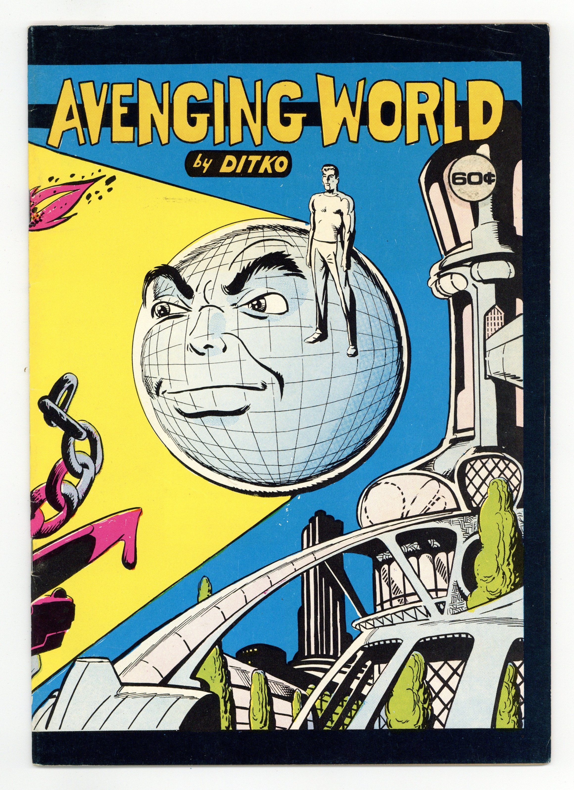 Published 1973 by Bruce Hershenson.$23.00Written and illustrated by Steve Ditko. The Avenging World is the second in a series of quarterly magazines, each of which was written and drawn entirely by Steve Ditko, without any editorial direction. 36 pages, B&W. Cover price $0.60.