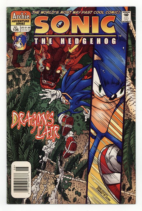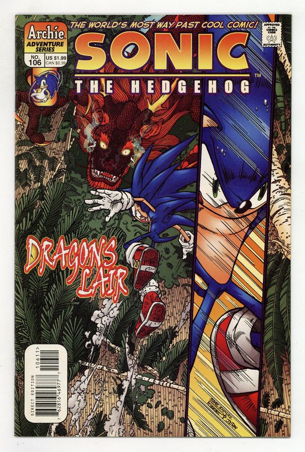 Published Apr 2002 by Archie Publications.$35.00by Bollers, Lim, Eklund & Pepoy "Crouching Hedgehog, Hidden Dragon" Part One: Princess Sally, Knothole Village's first ambassador, is sent on her first mission as an envoy of peace to the rest of Mobius. Sonic and the Freedom Fighters join her on her trek to The Hidden City of the Ancients. Before talks can commence, however, the Ancients ask the FF to help with a small problem they're having: A Fire-Breathing Dragon! PLUS: Knuckles in Part One of "Reunification" (by Ken Penders): A mysterious echidna appears on the Floating Island. Rather than finding Knuckles, they find a place inhabited by The Dark Legion. Who is this echidna and what does it have to do with Knuckles? Featuring a pulse-pounding cover by fan-favorite SPAZ! FC, 32pg $1.99 Cover price $1.99.