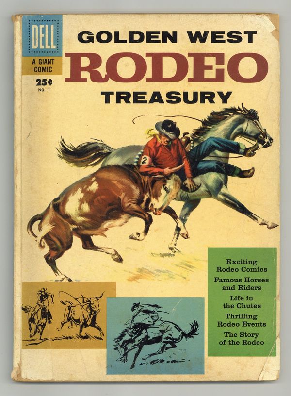 Tags: Dell Giant$11.50"Show of Force," "Mankiller," "The Story of Rodeo," "Trial at Gunpoint," and "Hero Worship." Painted cover. 100 Pages, Full Color. Cover price $0.25.