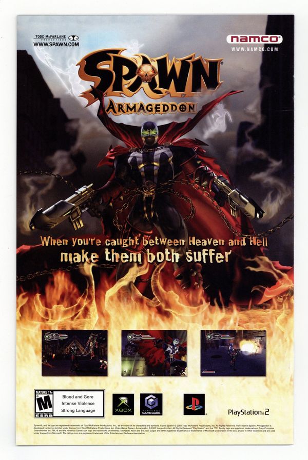 $40.00Direct Edition (W) Brian Holguin and Todd McFarlane (P) Angel Medina (I) Danny Miki (Cover) Greg Capullo and Todd McFarlane In stores the week of February 26th. The Concept: Al Simmons, once the U.S. government's greatest soldier and most effective assassin, was mercilessly executed by his own men. Resurrected from the ashes of his own grave in a flawed agreement with the powers of darkness, Simmons is reborn as a creature from the depths of Hell. Disfigured, homeless and alone, this warrior now known as Spawn wanders the shadowy alleys of New York City in search of his past life. This Issue: "God is a Bullet, Part 1"?Fifteen years ago, special operative Al Simmons was sent on a top-secret mission: to assassinate the popular leader a troubled east European nation. In the years since, the country has fallen under the thumb of a brutal, genocidal tyrant. Now, posing as a mercenary, Simmons travels halfway around the world. His purpose? To unleash Spawn's vengeance on the beast he helped to create. FC, 32pp$2.95Ongoing monthly series Cover price $2.50.