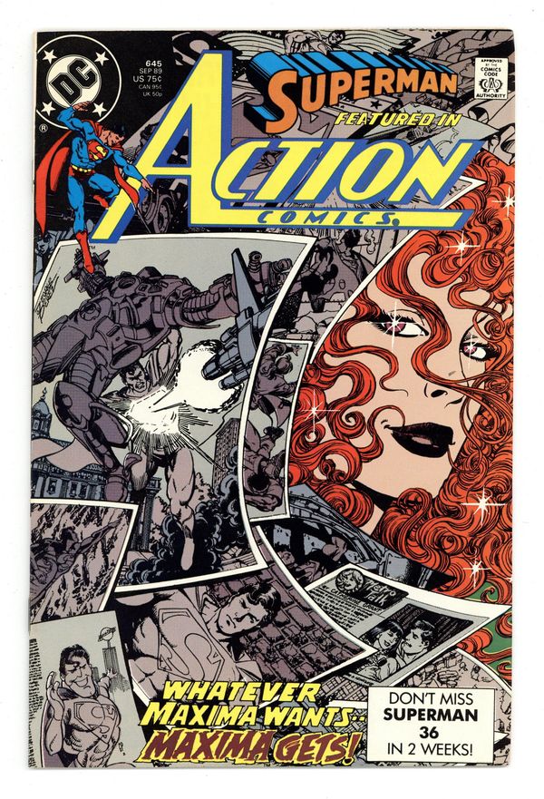 Tags: Superman$6.00Maxima (in her 1st appearance) tries to flush out Superman in "My Lady Maxima!" Starman cameo. Story by Roger Stern & George Perez. Art by Perez & Brett Breeding. Cover by Perez. 36 pages, Full Color, $0.75. Cover price $0.75.
