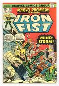 Tags: Martial Arts$17.50Cover pencils by Gil Kane, inks by Dan Adkins. Morning of the Mindstorm!, script by Chris Claremont, pencils by John Byrne, inks by Al McWilliams; Iron Fist arrives at the Wings to discover Colleen missing and Lee raving like a mad man; Danny and Scarfe try to track down Colleen but are assaulted by illusions courtesy of Angar; Beating Angar down, Iron Fist discovers a Stark International i.d. card on the villain and figures the company is behind the disappearance of his friend. Continued in Iron Fist (Marvel, 1975 series) #1. The letters page contains Marvel Value Stamp series A # 6 (Thor by John Buscema). 36 pgs. $0.25. Cover price $0.25.