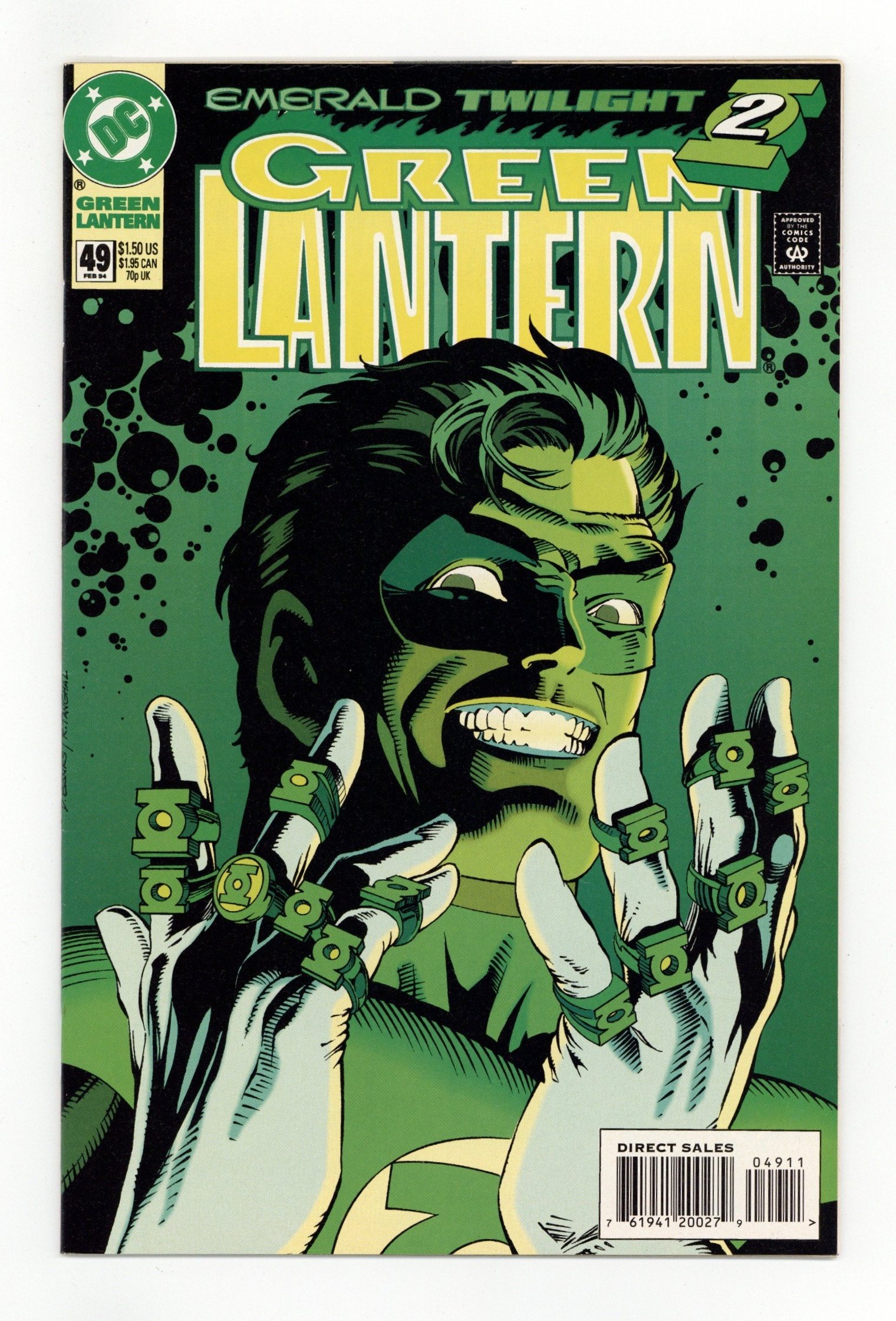 Tags: Green Lantern Emerald Twilight (part 2), Green Lantern$15.00Direct Edition. Emerald Twilight: Part 2 of 3. "The Present!" Story by Ron Marz. Art by Fred Haynes, Dennis Cramer, and Romeo Tanghal. Needing more power to bring back the destroyed Coast City and all its murdered citizens, an out of control Hal Jordan heads to OA. The Guardians send the entire Green Lantern Corps to stop him. But Hal was always the best and the rest of the GLs are about to find out why. Will the Guardians be forced to do the unthinkable? Will they release one terror to stop another? Cover price $1.50.