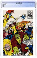Story by Jim Starlin. Art by Ron Lim and Al Milgrom. The Avengers, Fantastic Four, X-Men, X-Factor, Alpha Flight, Daredevil, Hulk, Moon Knight, and the New Warriors have all gathered at the behest of Reed Richards. Meanwhile, Galactus, Silver Surfer, Nova, and Dr. Strange investigate a mystical disturbance, followed in the shadows by the nefarious duo Dr. Doom and Kang. Thanos, Adam Warlock and the Infinity Watch pay a visit to Mistress Death to discover a startling revelation. Plus, when the volatile mutant Wolverine accuses Reed Richards of being an imposter the tensions between the mutant heroes and the others escalates into a battle royal. Then, the evil-Reed doppleganger springs his trap as a gamma bomb explodes. Story by Jim Starlin. Art by Ron Lim and Al Milgrom. 48 pages. Cover price $2.50.