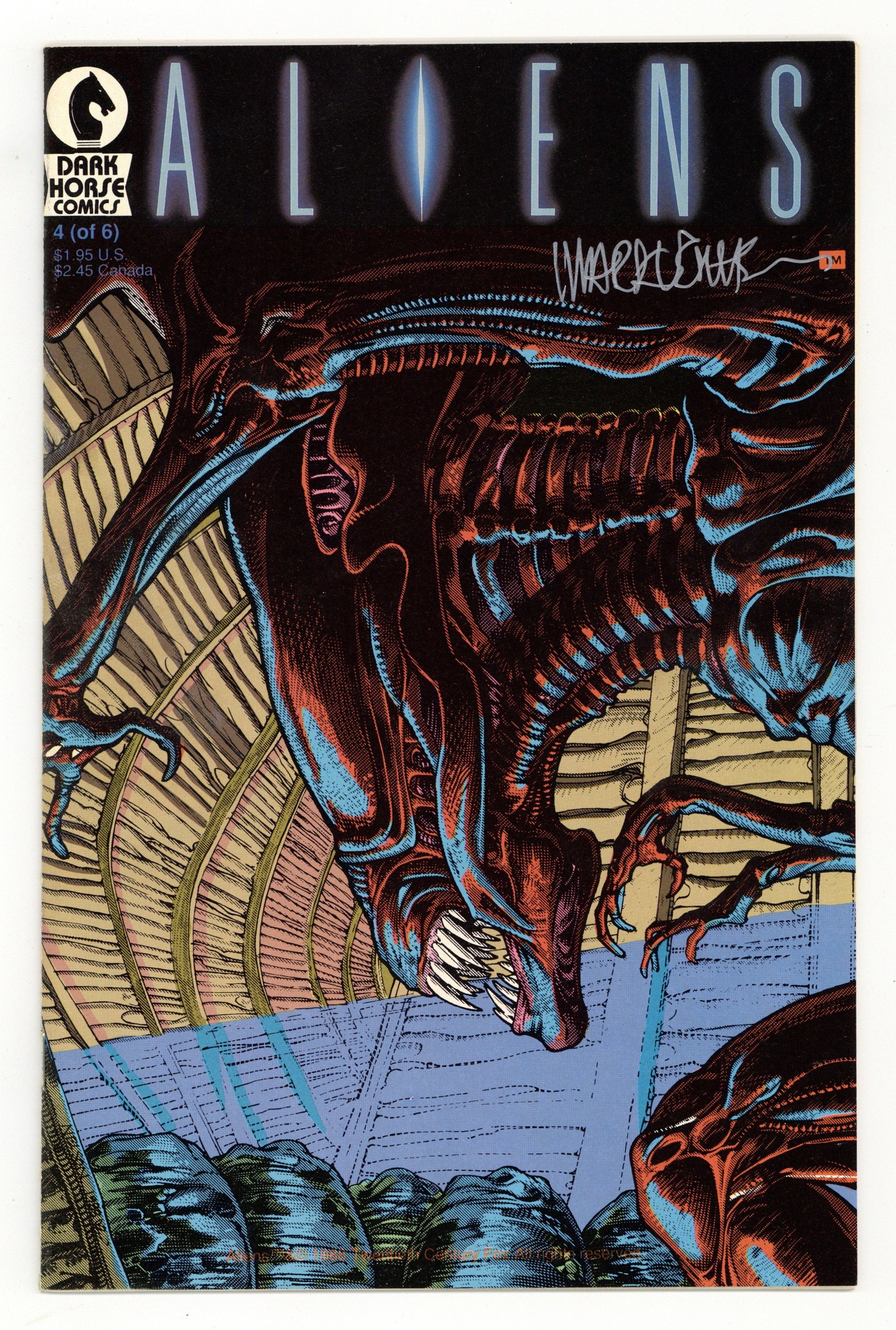 1st printing - Written by Mark Verheiden. Art and cover by Mark A. Nelson. All hell breaks loose as Hicks, Newt and the Marines arrive on the Aliens' homeworld! While back on Earth, a misguided religious fanatic frees the Alien Queen captured by the Bionational Corp.! Even if Hicks and Newt survive their mission, will there be an Earth to come home to? 32 pages, B&W. Cover price $1.95.