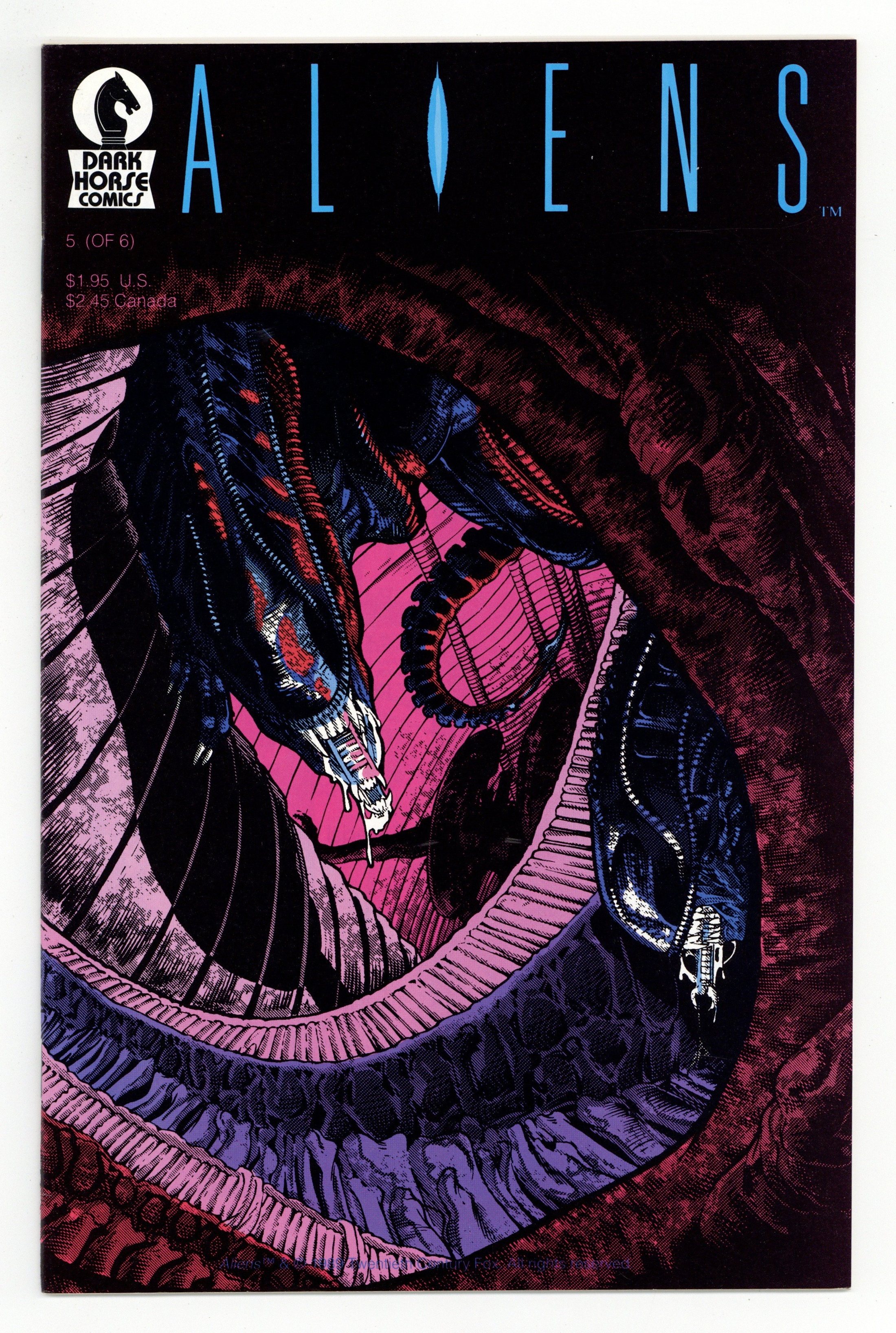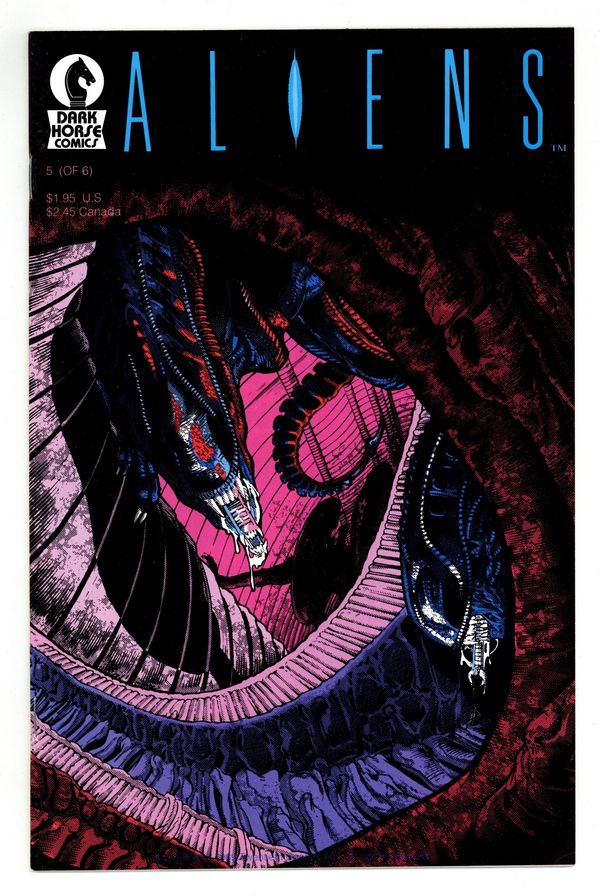 Published Jun 1989 by Dark Horse.$15.001st printing - Written by Mark Verheiden. Art and cover by Mark A. Nelson. Hicks, Newt and their crew of Marines are finding conditions on the Alien homeworld to be more than they bargained for as they discover that there are things even the Aliens are afraid of! Meanwhile, a mad, fanatical preacher has loosed the corporation's captive Queen on an unsuspecting Earth--to force mankind into an unholy "Communion"! 32 pages, B&W. Cover price $1.95.