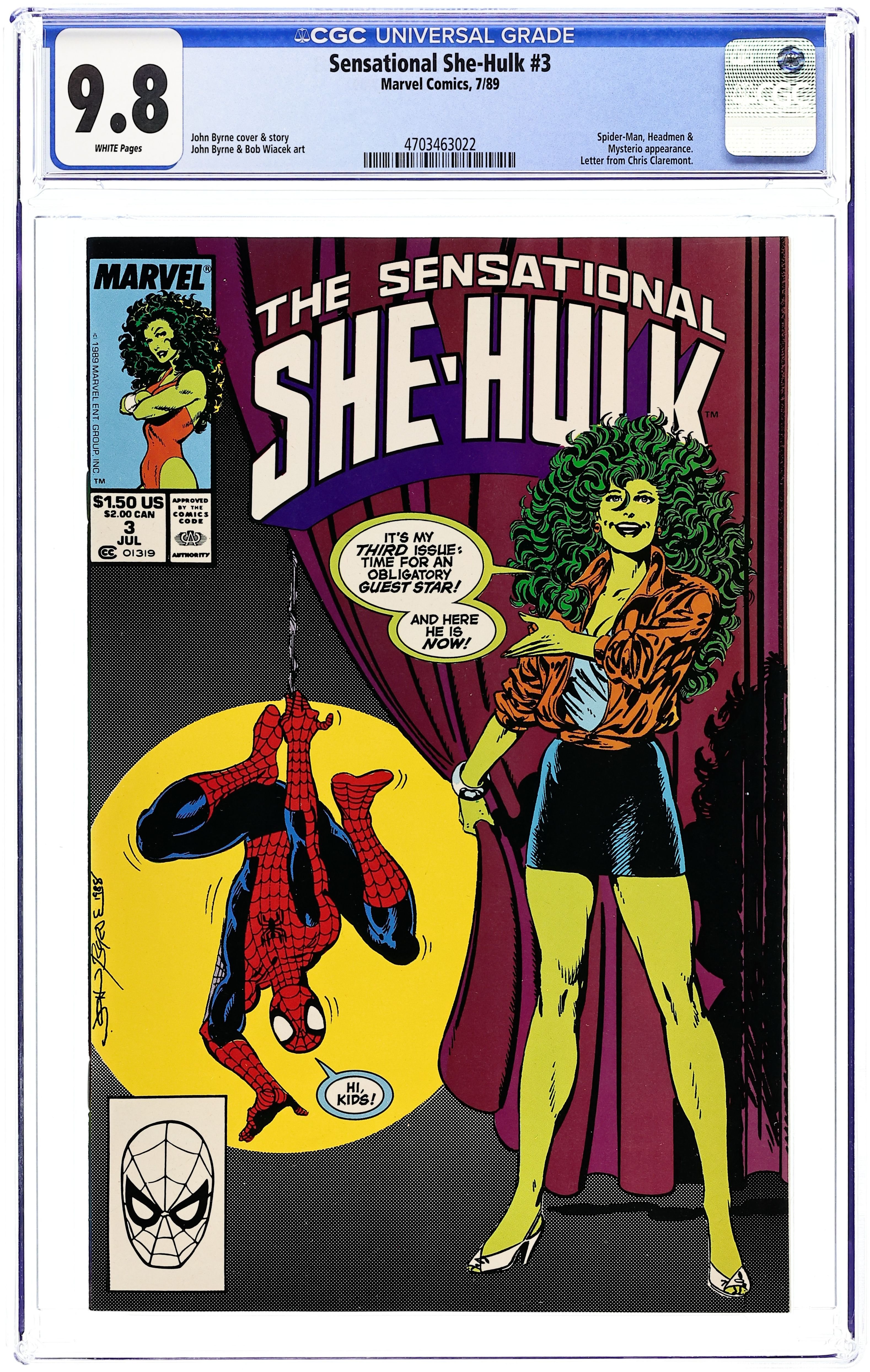 Direct Edition. Cover art by John Byrne. My Guest Star... My Enemy, script and pencils by John Byrne, inks by Bob Wiacek; Spider-Man battles Mysterio and She-Hulk's headless body. 36 pgs. $1.50. Cover price $1.50.
