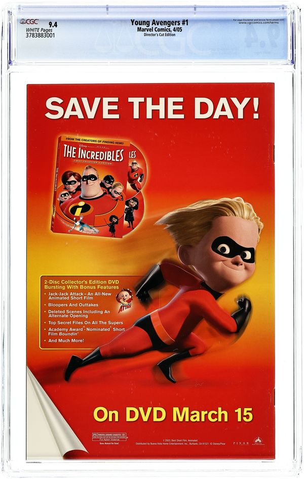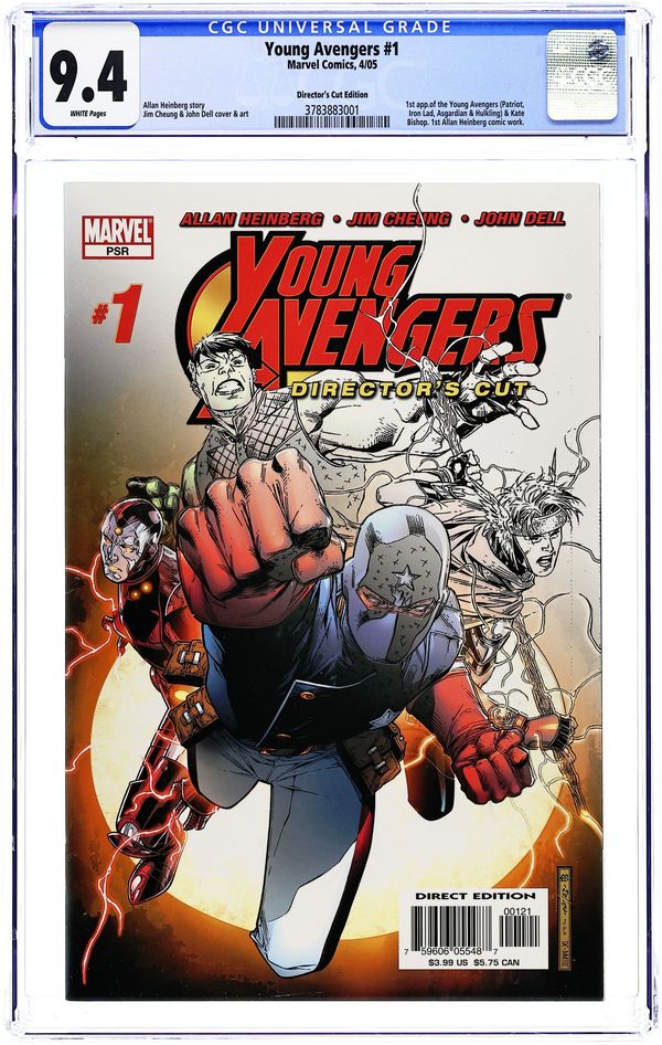 Written by ALLAN HEINBERG Pencils & Cover by JIM CHEUNG In the wake of AVENGERS DISASSEMBLED, a mysterious new group of teen super heroes appears. But who are they? Where did they come from? And what right do they have to call themselves THE YOUNG AVENGERS? Young Gun Jim Cheung and TV superstar writer Allan Heinberg (The O.C., Sex in The City, and Party of Five). This series promises to shock and surprise, so don't miss it!! The Director's Cut features previously unseen character designs and cover sketchs by Jim Cheung and the original unedited script for Young Avengers #1! 48 PGS./Marvel PSR ...$3.99 Cover price $3.99.