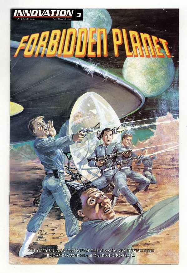 Published Sep 1992 by Innovation.$9.70Part three of Innovation's official comic book adaptation of MGM's Forbidden Planet (1956) introduces the Id Monster, a terrifying creature formed by man's subconscious. Also, Morbius gives a couple of the crew members of the C-57-D the lowdown on the Krell, an ancient, highly advanced civilization. Script by David Campiti, with adaptation and painted art by Daerick Gross. Includes essay "The Face of the Gorgon" by Steve "Mr. Movie" Friedman. Cover price $2.50.