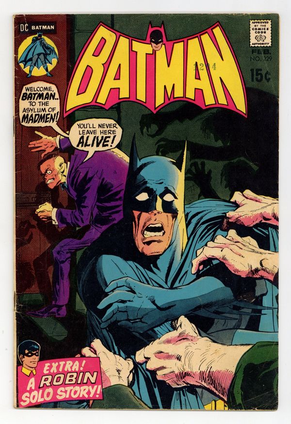 Tags: Batman$72.00Cover pencils by Neal Adams, inks by Dick Giordano. "Asylum of the Futurians!", script by Robert Kanigher, pencils by Irv Novick, inks by Dick Giordano; Late one night, on a road on the outskirts of Gotham City, Batman finds a young woman who is trying to find someone to save her husband who has been abducted by a strange group of people. "Temperature Boiling... and Rising!", script by Mike Friedrich, pencils by Irv Novick, inks by Frank Giacoia; Robin discovers the truth behind a fake photo of candidate Stuart and who burned down his campaign headquarters. Fantastic Fingerprints! filler page; 3 panel illustrations with accompanying text. Letter to the editor from comics writer Mike Barr. 36 Pages, Full Color. Cover price $0.15.