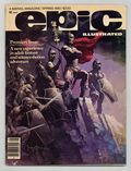 Cover by Frank Frazetta. Written by Stan Lee, Wendy Pini, Leopoldo Duranona, Bob Larkin, Jim Starlin, Ray Rue, John Poscik, Mirko Ilic, Ernie Colon, Arthur Suydam, George Bush and Carl Potts. Art by John Buscema, Rudy Nebres, Wendy Pini, Leopoldo Duranona, Bob Larkin, Jim Starlin, Ray Rue, Thomas Blackshear, Mirko Ilic, Ernie Colon, Arthur Suydam, George Bush and Carl Potts. Epic Illustrated was touted as a new experience in adult fantasy and science fiction adventure. Published by Marvel Comics, this magazine was aimed at a more mature audience. In this issue: A philosophical tale about God with Galactus, the Devourer of Worlds, and his herald the Silver Surfer in "The Answer" by Stan Lee, John Buscema and Rudy Nebres (with colors by Rick Veitch). Plus: Selah defies her father, Olbar, to be with Malak in the ElfQuest story "Homespun" by Wendy Pini; "Aware" by Leopoldo Duranona; "For the Next 60 Seconds" by Bob Larkin; "Aknaton (Metamorphosis Odyssey Chapter I)" by Jim Starlin; "Lullabye of Bedlam" by Ray Rue; "Elfspire" (preview excerpt of an illustrated text story) by John Poscik and Thomas Blackshear; 1-pagers by Mirko Ilic - "History of Human Absurdity Part 1," "The Victor" and "Shakti"; "Convert" by Ernie Colon; "Heads" by Arthur Suydam; "Za! (Metamorphosis Odyssey Chapter II)" by Starlin; "Juliet (Metamorphosis Odyssey Chapter III)" by Starlin; "Detour" (text story with one illustration) by George Bush; and "Topaz" by Carl Potts. Plus: Feedback comments on Epic Illustrated from Neal Adams, Ray Bradbury, George Pal, Joseph Stefano and Ian Summers. Magazine, 96 pages, PC/PB&W. Cover price $2.00.