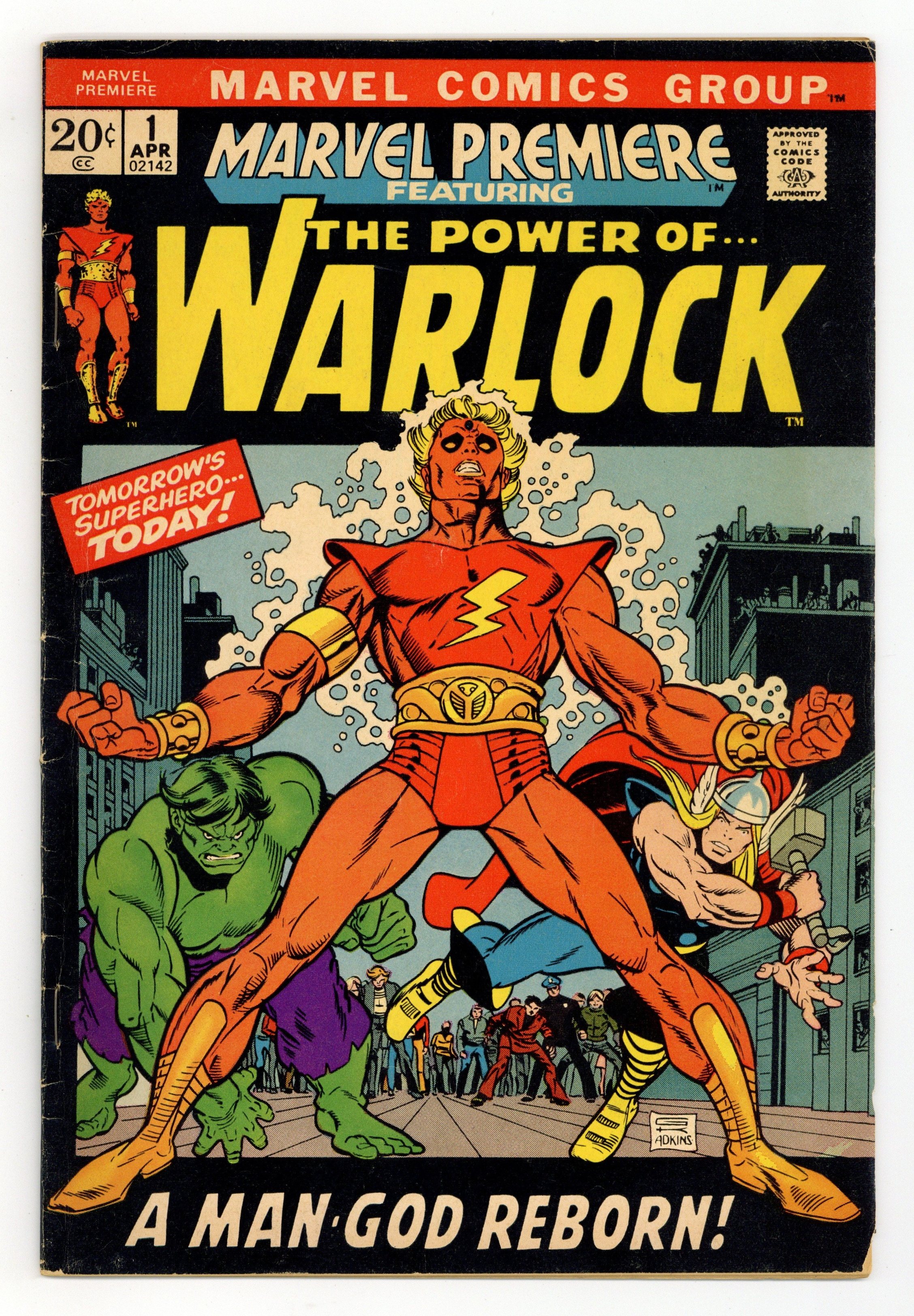 Origin of Warlock and Counter-Earth in "And Men Shall Call Him Warlock!" Script by Roy Thomas, pencils by Gil Kane, inks by Dan Adkins. This is the first appearance of Warlock, who was previously the character "Him" in Fantastic Four (see issues 66 and 67) and Thor (issues 165, 166) comics. High Evolutionary guest stars. Brief appearances by the Hulk and Thor. Kane/Adkins cover. Cover price $0.20.