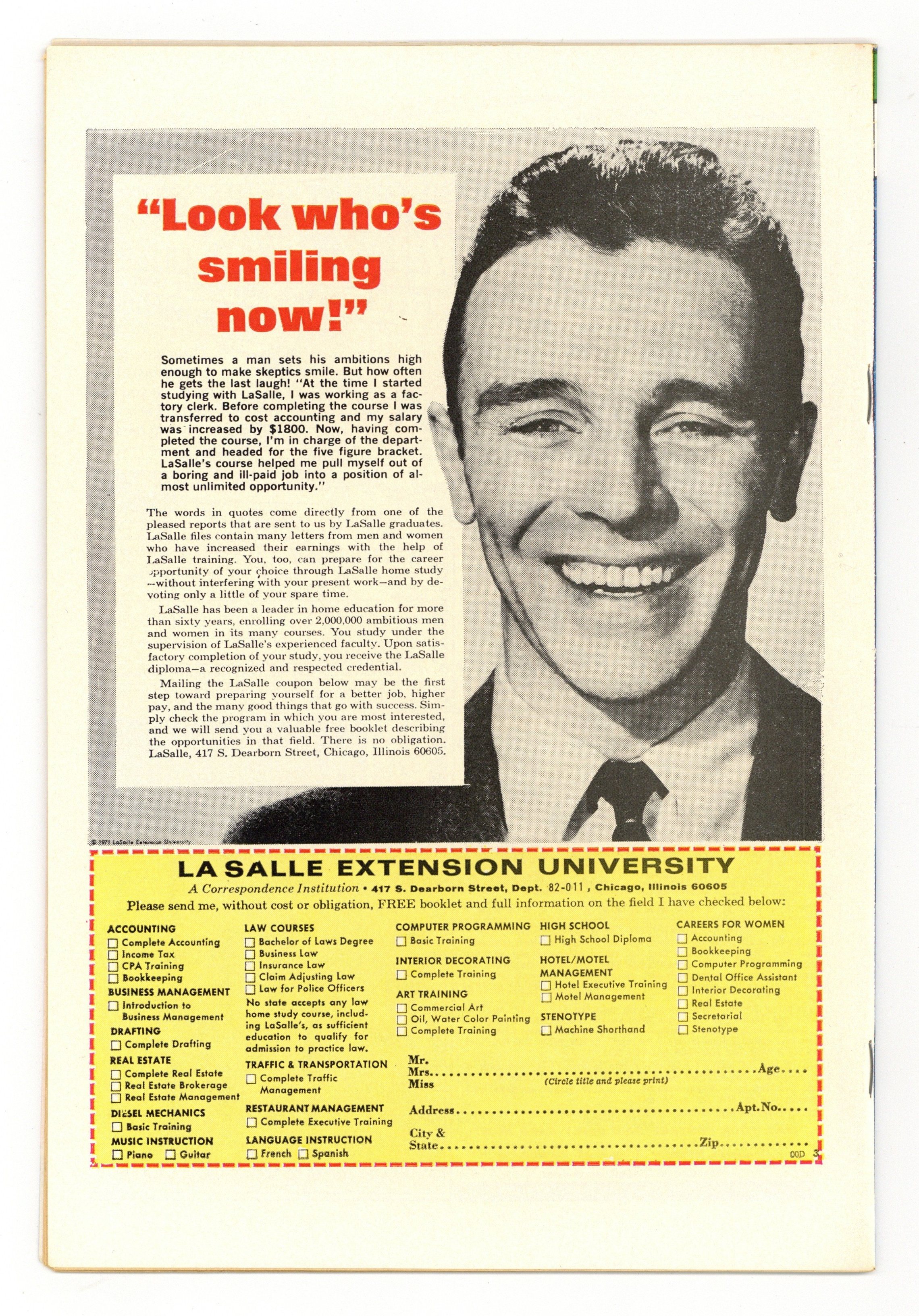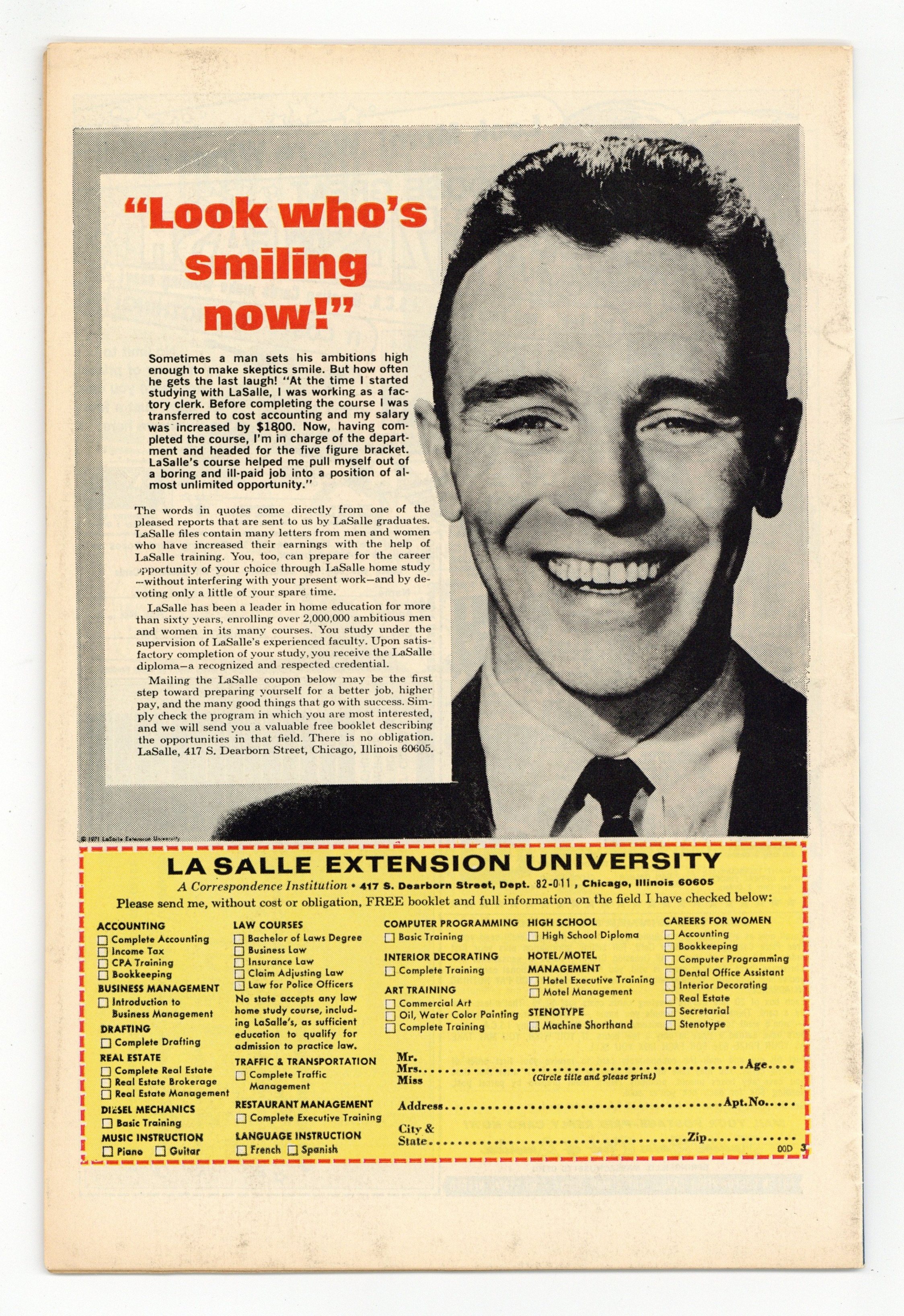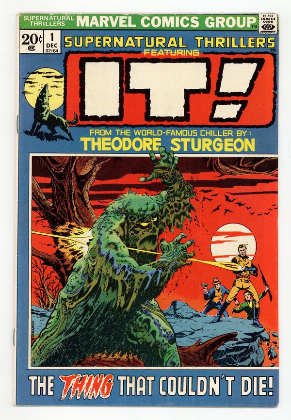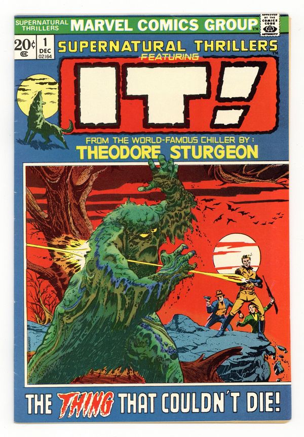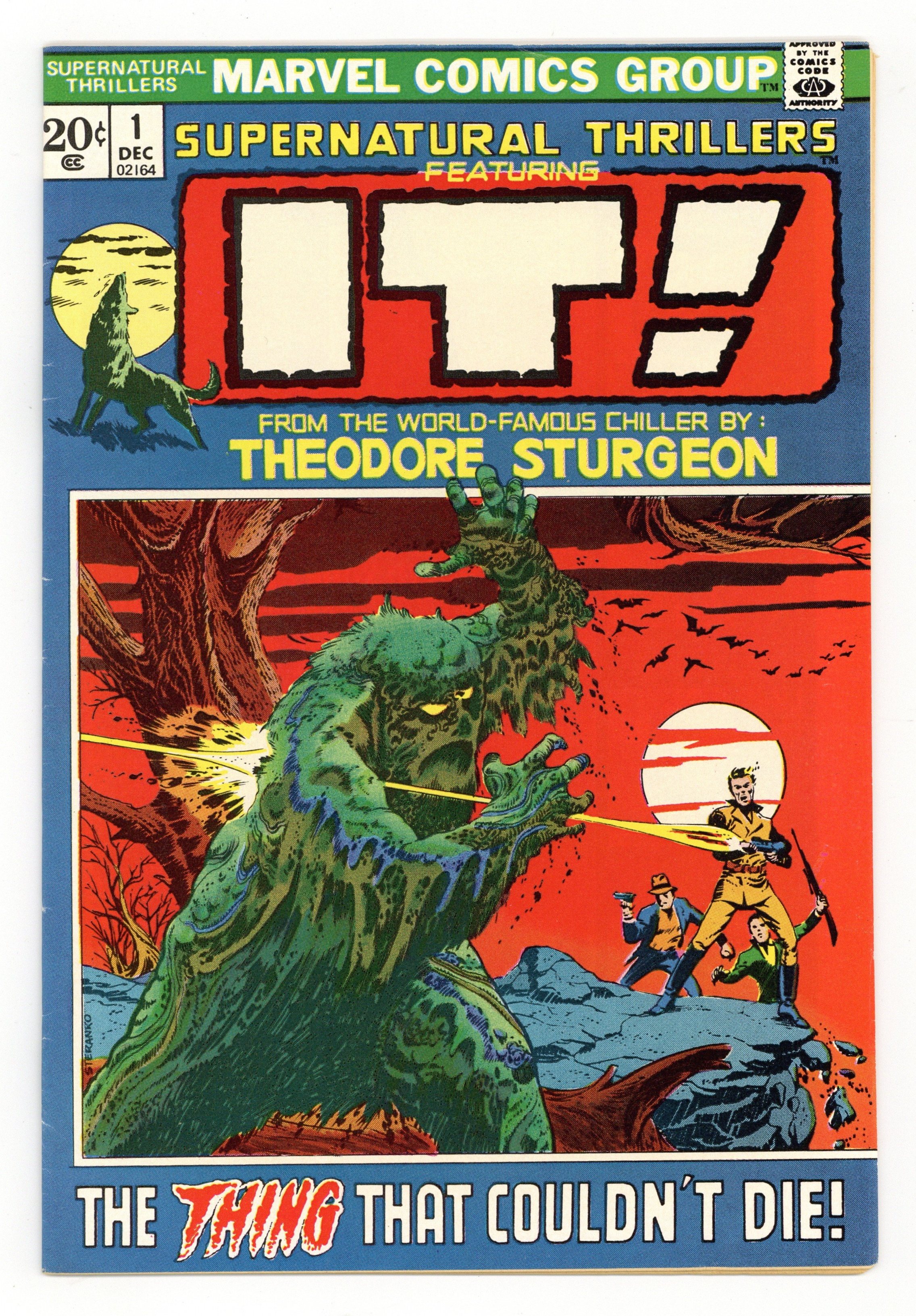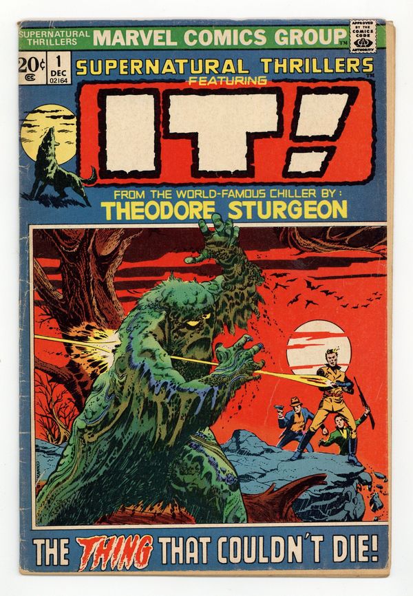 Cover art by Jim Steranko. It, script by Theodore Sturgeon (Original Story) and Roy Thomas (Adaptation), pencils by Marie Severin, inks by Frank Giacoia; The muck-encrusted monster named It shambles thru the forest, where it encounters the Drew family. 32 pgs. $0.20. Cover price $0.20.