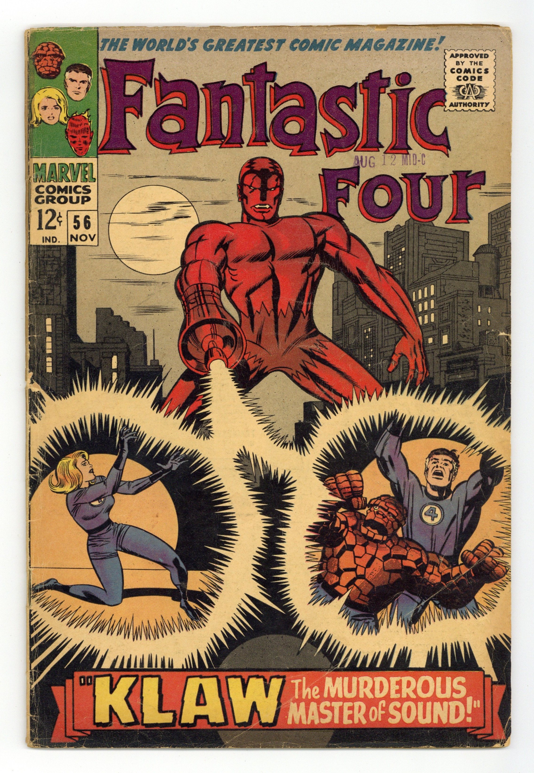 Cover pencils by Jack Kirby, inks by Joe Sinnott. Klaw The Murderous Master of Sound!, script by Stan Lee, pencils by Jack Kirby, inks by Joe Sinnott; Klaw attacks the Baxter Building. The Silver Surfer, the Inhumans, Doctor Doom, and the Black Panther all have brief appearances. 36 pgs. $0.12. Cover price $0.12.
