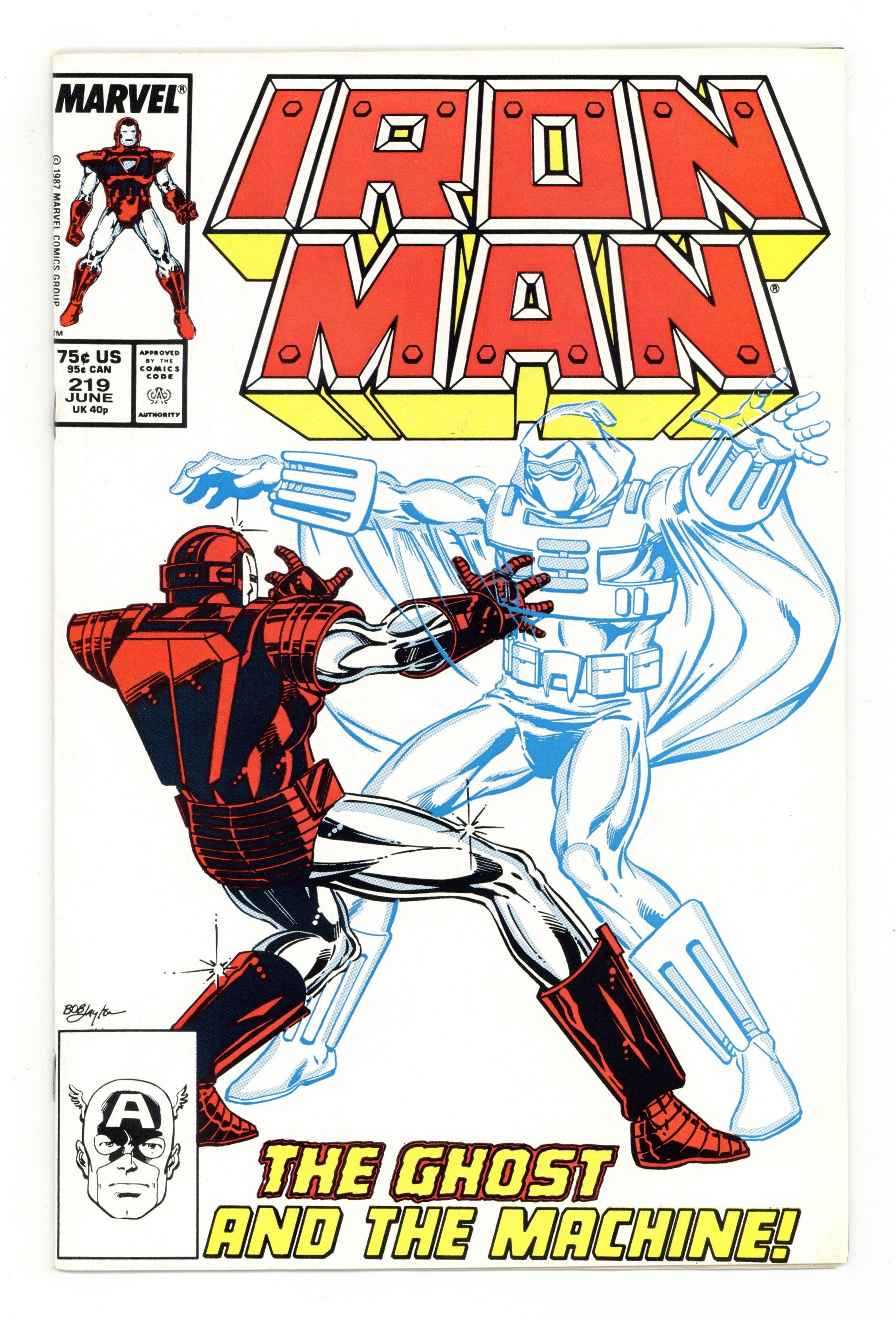 Tags: Marvel Legacy Numbering: Iron Man (part 219), Iron Man$16.75Direct Edition. First appearance of the Ghost. "Ghost Story" Part 1 of 3. Plot by David Michelinie and Bob Layton. Script by David Michelinie. Art by Bob Layton. Cover by Bob Layton. Stark Enterprises is ready to make its first corporate acquisition: the Accutech Research and Development company! However a strange phenomenon (or perhaps strange person) has been plaguing Accutech and causing various accidents! Some employees blame it on a mysterious ghost! Does a ghost actually walk the halls of Accutech? Once Tony signs the contract to purchase the company, he finds out the answer! And Iron Man's first battle vs. the Ghost begins in earnest! First appearance of Abe Zimmer. Cameo appearances by Jim Rhodes. (Notes: The Ghost debuted in the MCU in the 2018 movie: Ant-Man and the Wasp. This issue was reprinted in2015 in the softcover: Iron Man Stark Wars Epic Collection.) 32 pages. Cover price $0.75.
