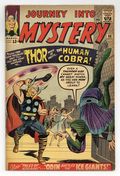 Ends Apr 27 9:46 PM CST Bid History 4 bids Current Bid $18 Your Secret Max Bid If you'd like to bid, please log in or register. Cover pencils by Jack Kirby, inks by Sol Brodsky. First appearance of the Cobra in "Challenged by the Human Cobra!", script by Stan Lee, art by Don Heck; While visiting India, Don Blake finds that one of his old teachers has been murdered by a villain who gained the power of a snake; Odin and Jane Foster appearances. "Snowstorm" two-page text story. "The Purple Planet," script by Stan Lee (plot) and Larry Lieber (script), pencils by Larry Lieber, inks by Matt Fox; A criminal in the future travels to a rich but primitive world, hoping to exploit the simple people. Second "Tales of Asgard" installment, "Odin Battles Ymir, King of the Ice Giants," script by Stan Lee, pencils by Jack Kirby, inks by Don Heck; The ice giants, led by Ymir, attack Asgard but Odin defends it and traps Ymir inside a ring of fire. 36 pgs., full color. $0.12. Cover price $0.12.