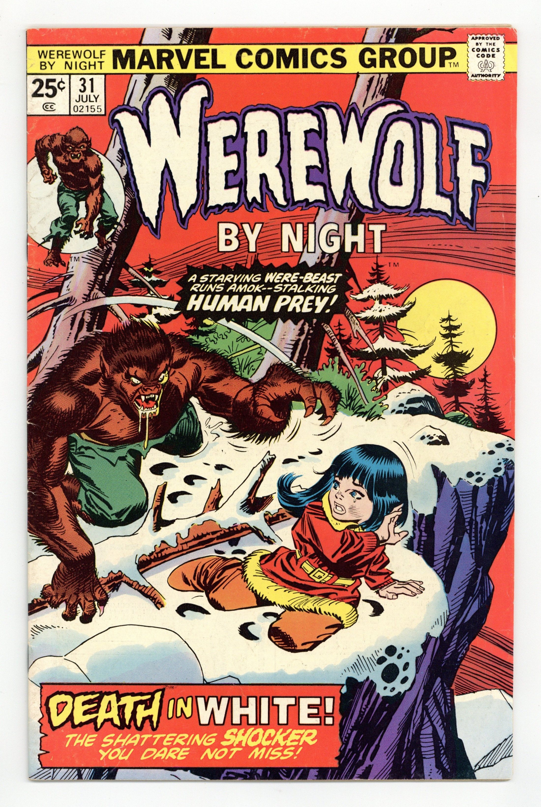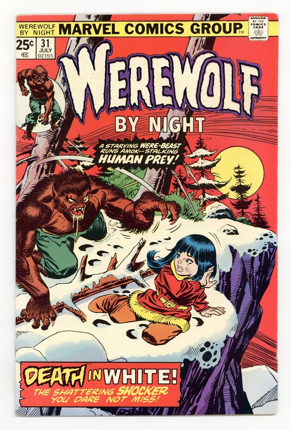 $22.00"Death in White!" Written by Doug Moench and Don Perlin. Art by Don Perlin. Cover by Gil Kane. A child lost in a blizzard with a werewolf!!! What follows next could haunt Jack Russell for the rest of his unnatural cursed life. 32 pages, FC. Cover price $0.25.