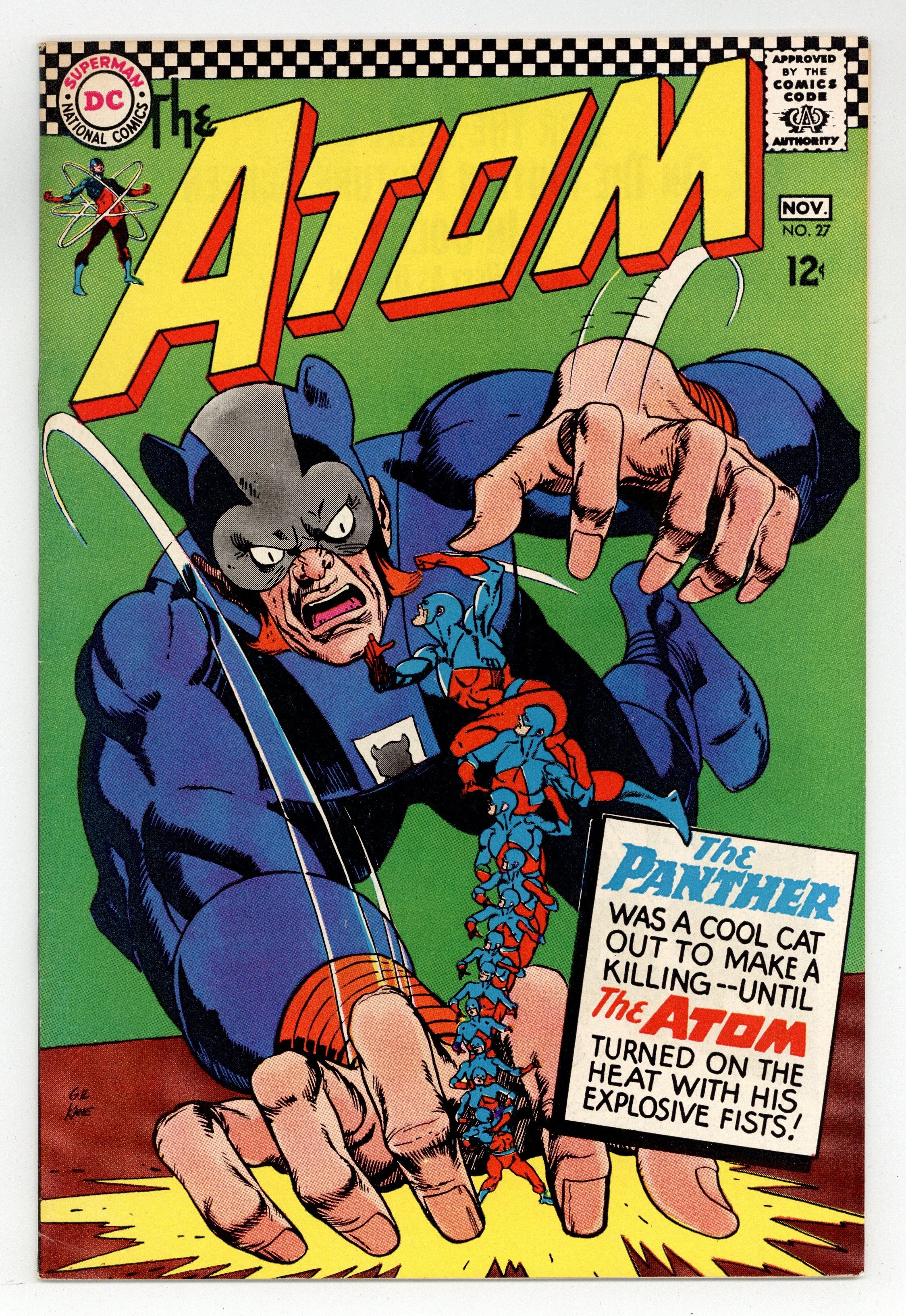 Cover by Gil Kane. "Beauty and the Beast-Gang!", script by Gardner Fox, pencils by Gil Kane, inks by Sid Greene; The Atom battles the Panther Gang. "Stowaway on a Hot-Air Balloon!", script by Gardner Fox, pencils by Gil Kane, inks by Sid Greene; In this "Time Pool" story, the Atom meets Benjamin Franklin and the Montgolfiers. Ad for Adventures in the GI Joe Club. 36 pgs., full color. $0.12. Cover price $0.12.