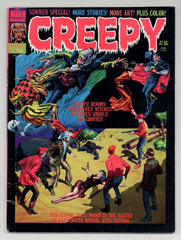 $21.50Stories in this issue include: Vampires Fly at Dusk! by Archie Goodwin and Reed Crandall; Curse of the Full Moon! by Archie Goodwin and Reed Crandall; The Cask of Amontillado! by Archie Goodwin and Reed Crandall (from the story by Edgar Allan Poe); Hot Spell! by Archie Goodwin and Reed Crandall; The Beast on Bacon Street by Budd Lewis and Reed Crandall (in color); Hop-Frog! by Archie Goodwin and Reed Crandall (from the story by Poe); The Squaw! by Archie Goodwin and Reed Crandall (from the story by Bram Stoker); Frozen Fear! by Archie Goodwin and Reed Crandall; and Keep your Spirits Up by Bill Parente and Reed Crandall (story miscredited to Archie Goodwin). Cover art is a montage of interior panels. Cover price $1.25.